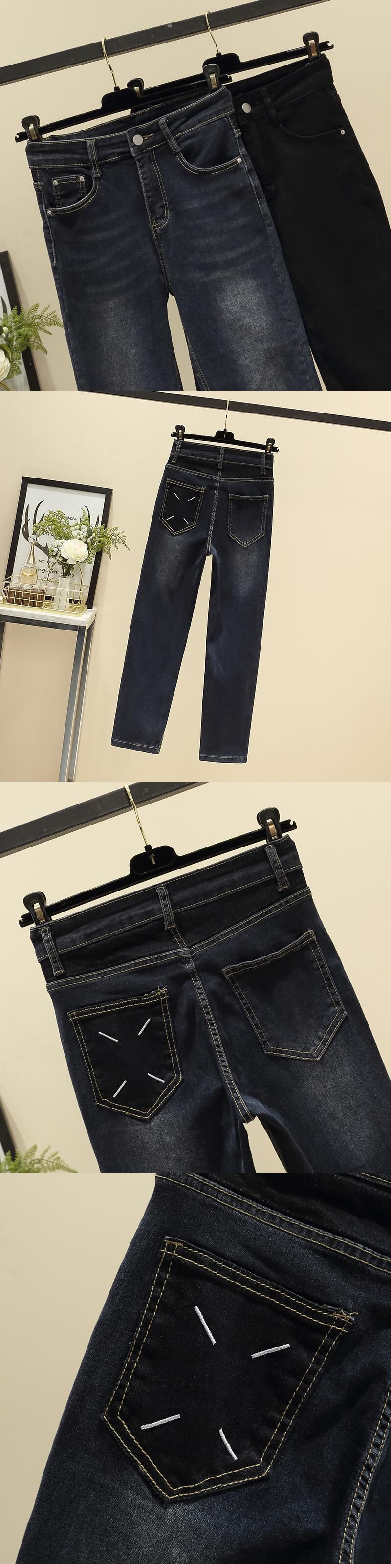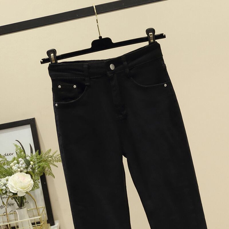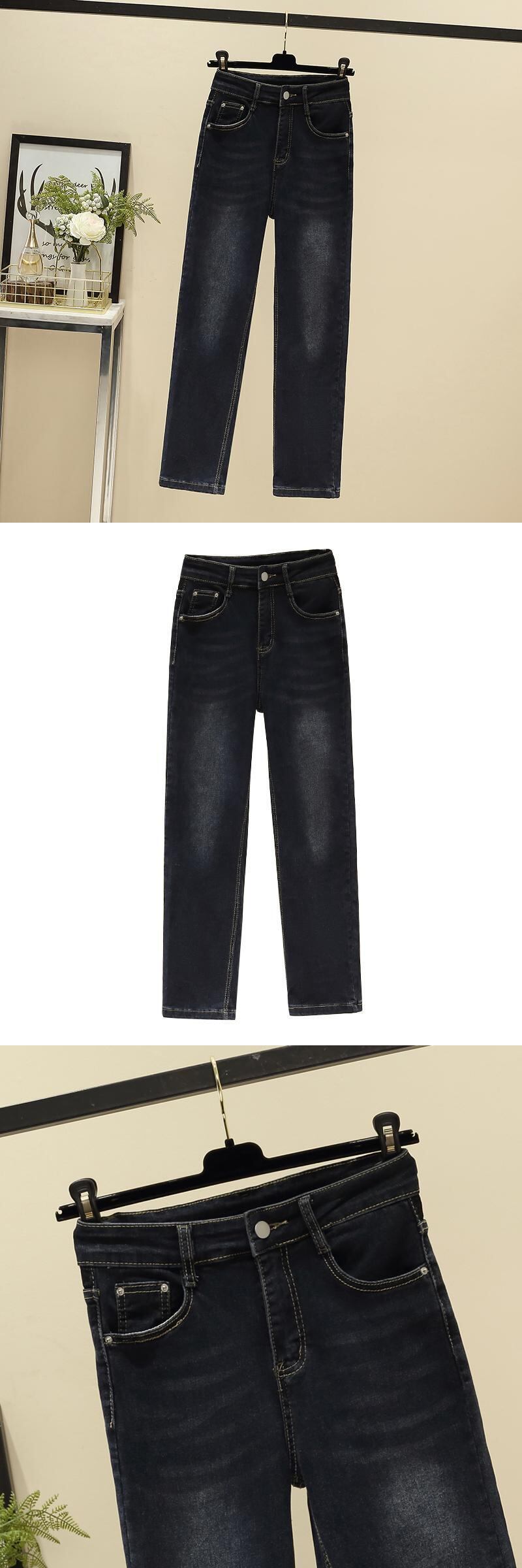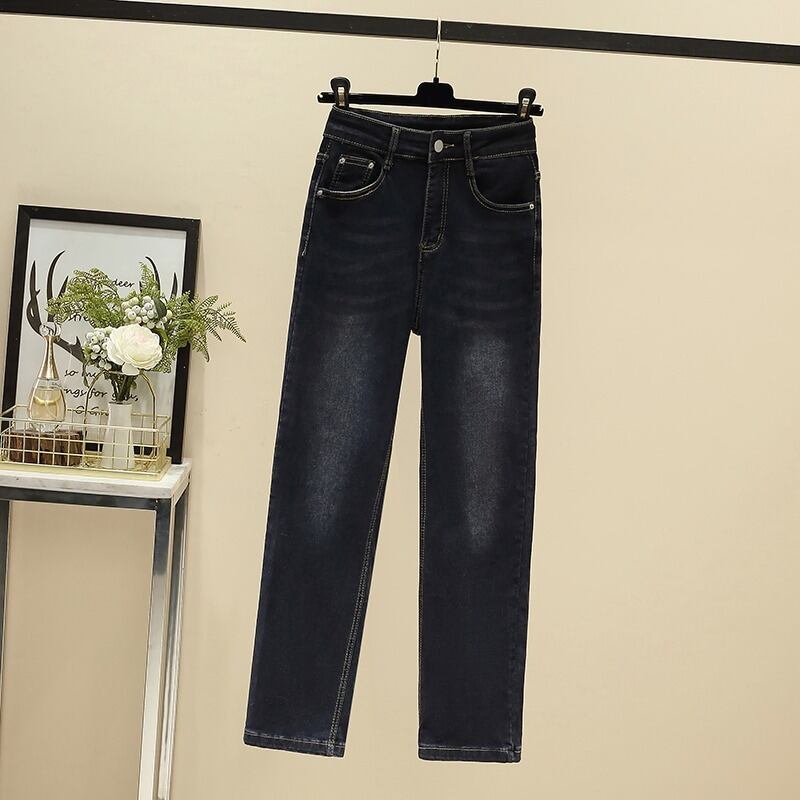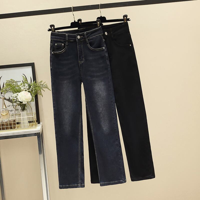 プラスサイズの婦人服 2023 春の新しいスタイルの太った姉妹ファッションハイウエスト気質のシックなデザインセンスストレートジーンズ ハイウェスト 大きめサイズ スプリング 春物 8884186092225494