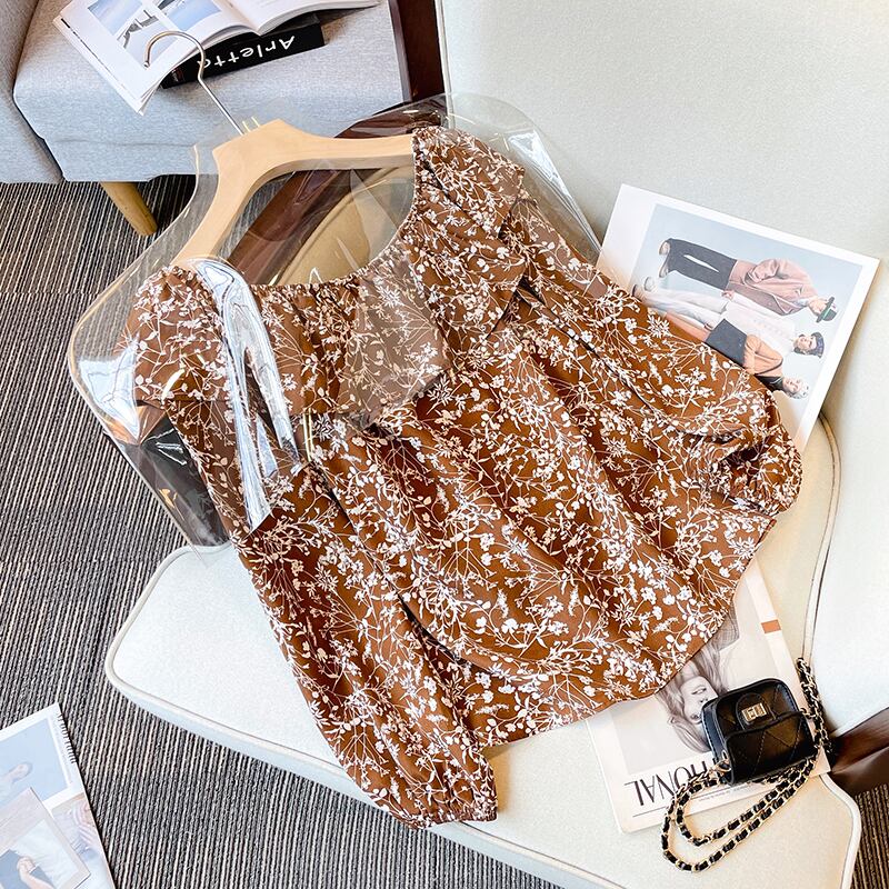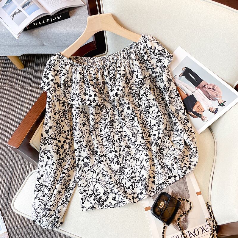大きいサイズの婦人服 2023 春服脂肪姉妹新しいファッション薄い花柄ワンショルダー 2 着長袖トップ女性 ロング 大きめサイズ スプリング 春物 8884126444046361