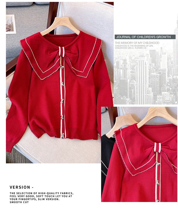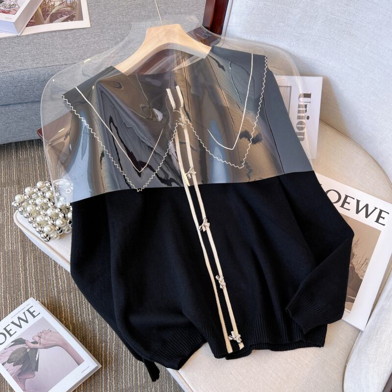 プラスサイズの婦人服 2023 脂肪姉妹春の新ファッション甘い弓の襟プルオーバー底入れニットセータートップ リボン 大きめサイズ 大人ガーリー スウィート キュート カジュアル スプリング 春物 8884172534179737