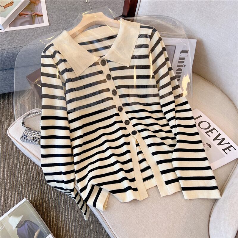プラスサイズの婦人服 2023 春の新しいファットシスターファッション全試合ボトミング不規則なストライプスリットニット女性 大きめサイズ スプリング 春物 8884174808809479