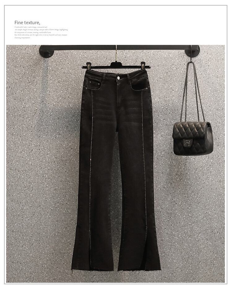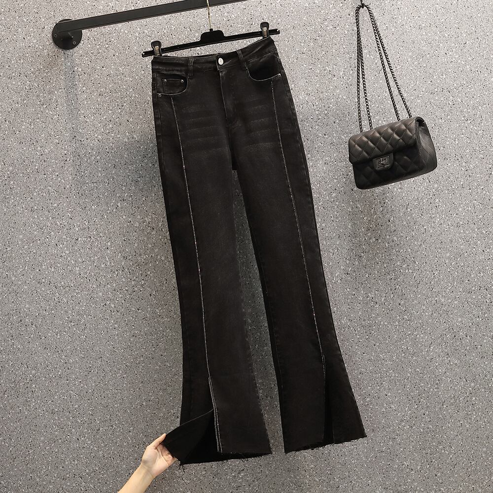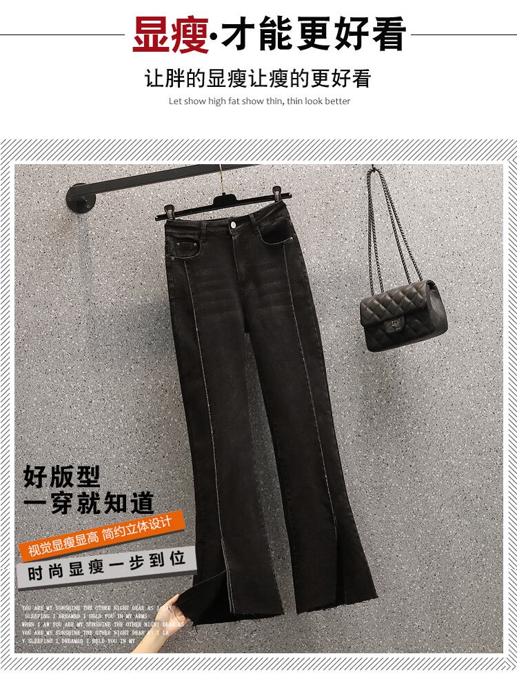 プラスサイズの婦人服2023春の新しいスタイルの太った姉妹のファッションショーの長い脚の多用途のオールマッチ痩身マイクロラヒップカバーデニムパンツ ロング 大きめサイズ スプリング 春物 8884132565143843