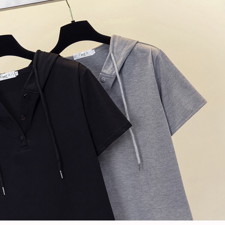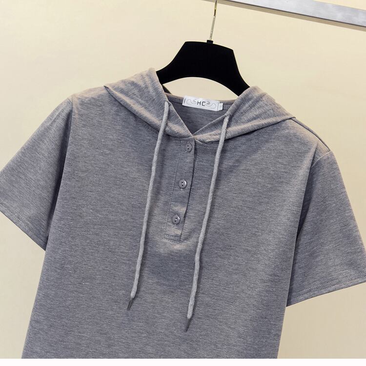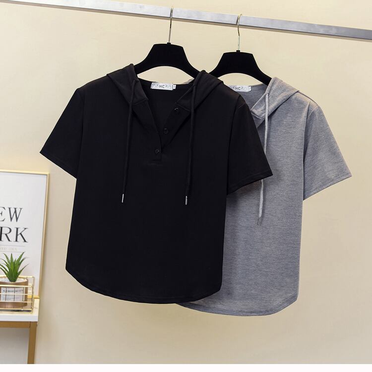 プラスサイズの婦人服 2023 夏の新しいファットシスターファッション気質カジュアルオールマッチフード付き半袖シックなトップ 大きめサイズ サマー 夏物 8884110414329423