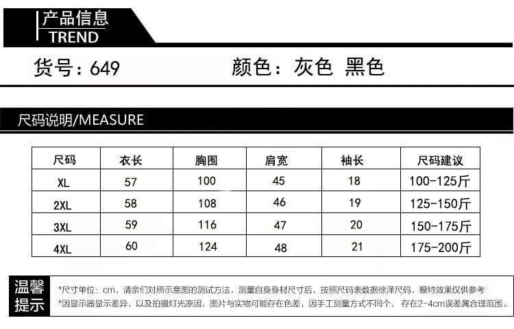 サイズ:XLコード[100-125キャティ],2XLコード[125-150キャティ],3XLコード[150-175キャティ],4XLコード[175-200キャティ]