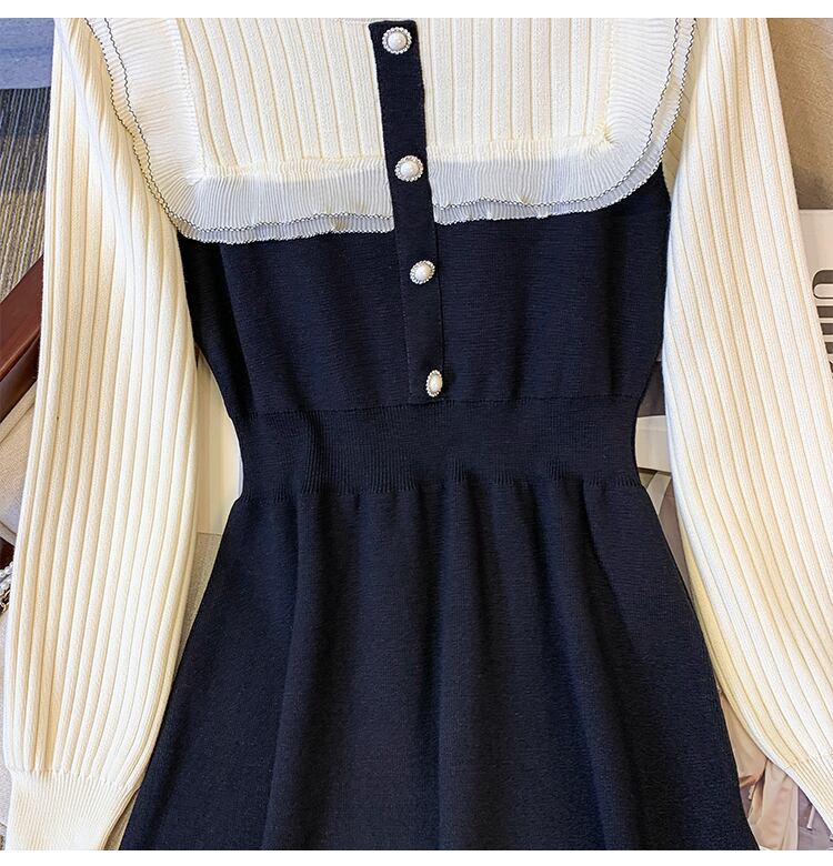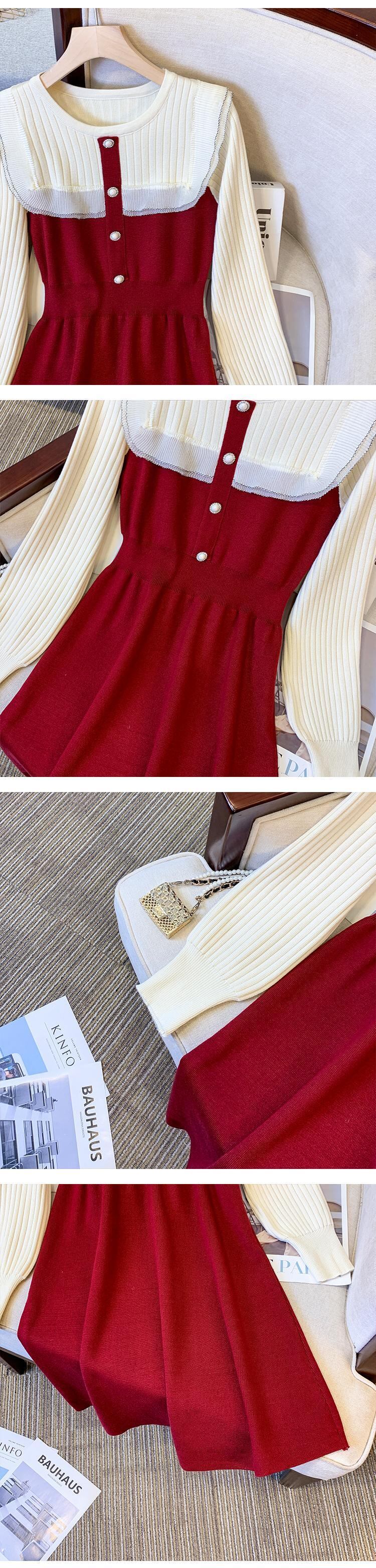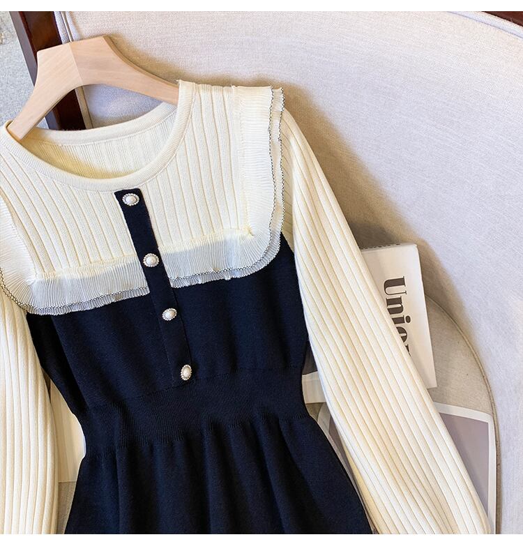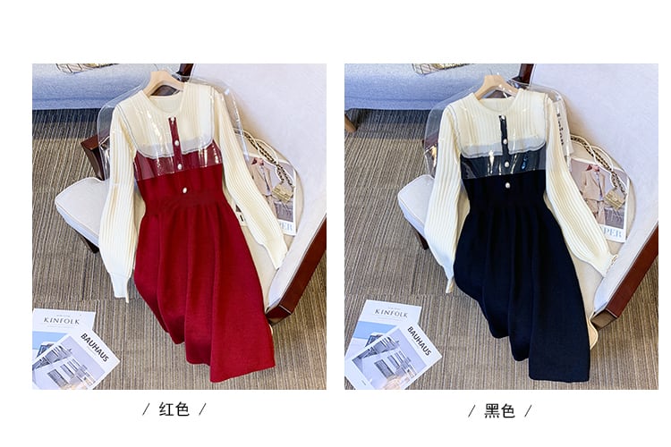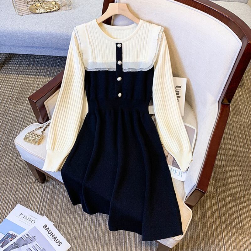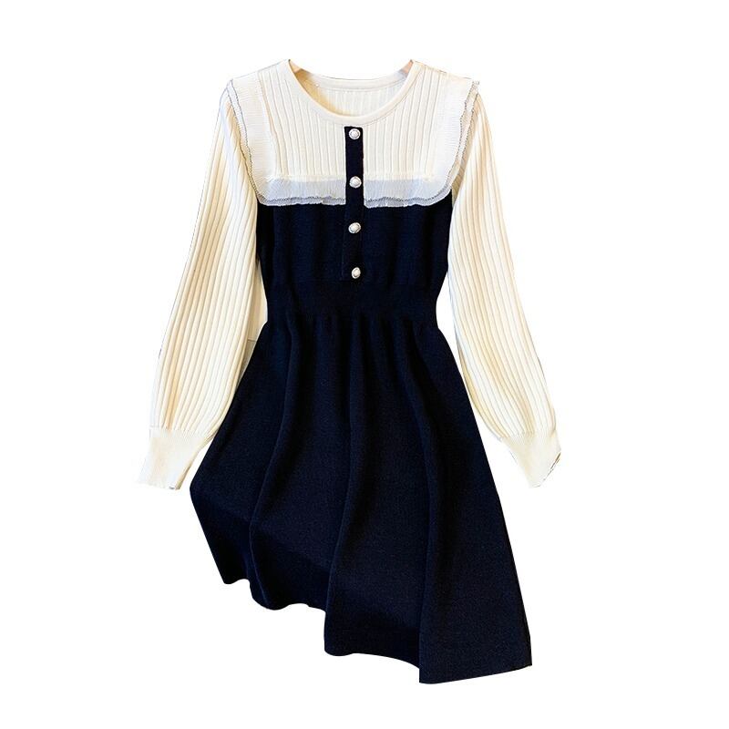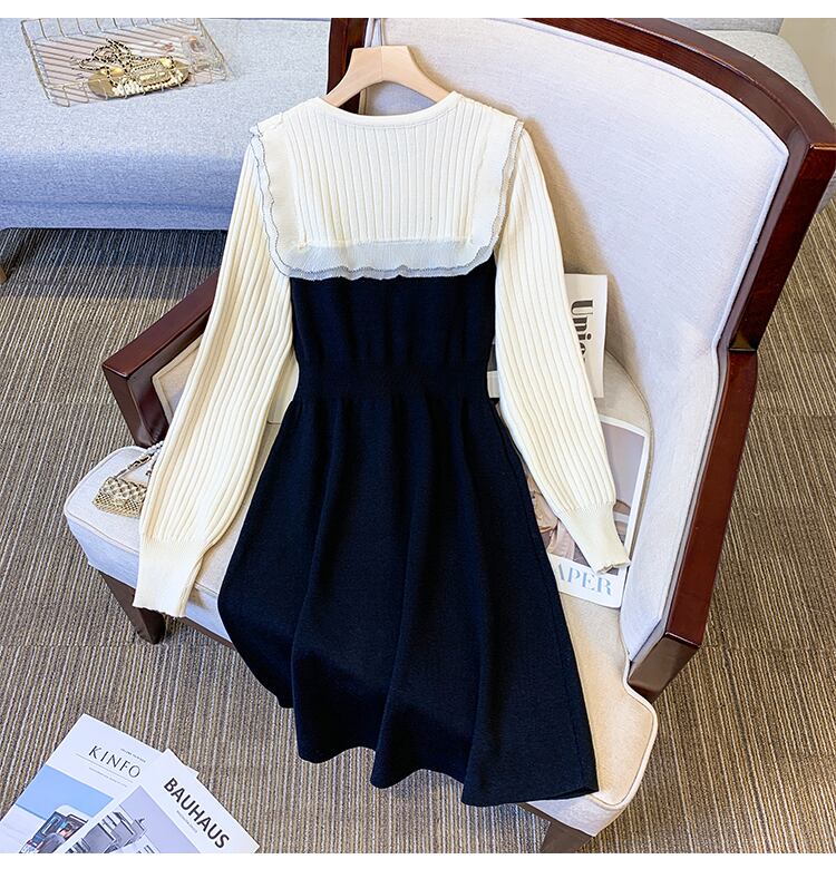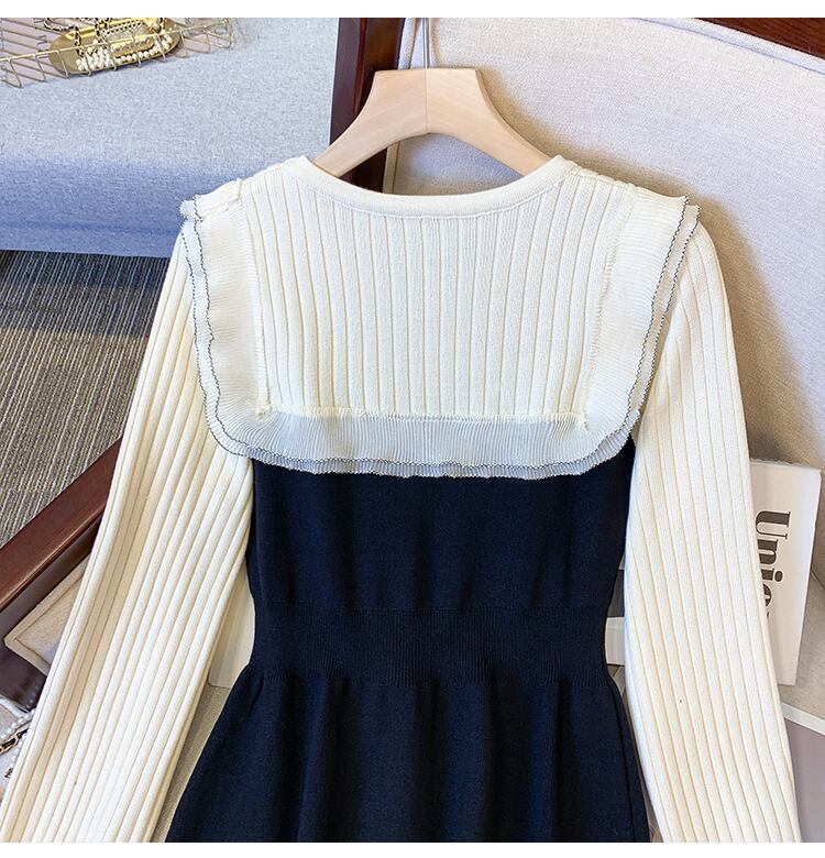 大きいサイズの婦人服 2023 春の新しいファット シスター スリム フィットと薄いスプライシング フェイク ツーピース フレンチ ニット ドレス 大きめサイズ スプリング 春物 8884117262261050