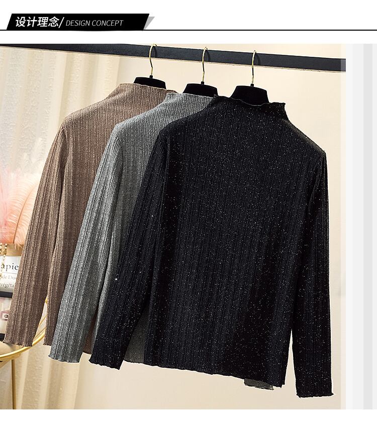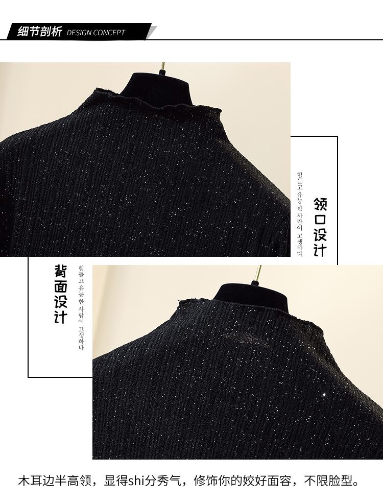 プラスサイズの婦人服 2023 春服脂肪姉妹新しいハーフハイカラーニットセータールーズプルオーバースパンコールボトムシャツトップ 大きめサイズ スプリング 春物 8884114526926028