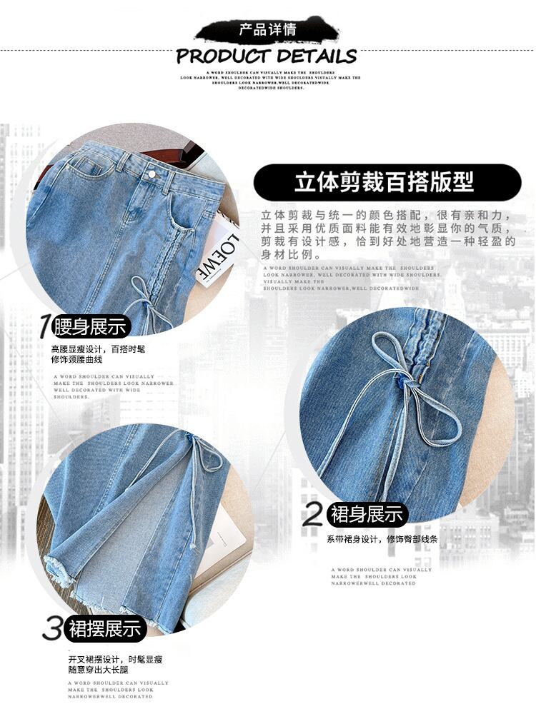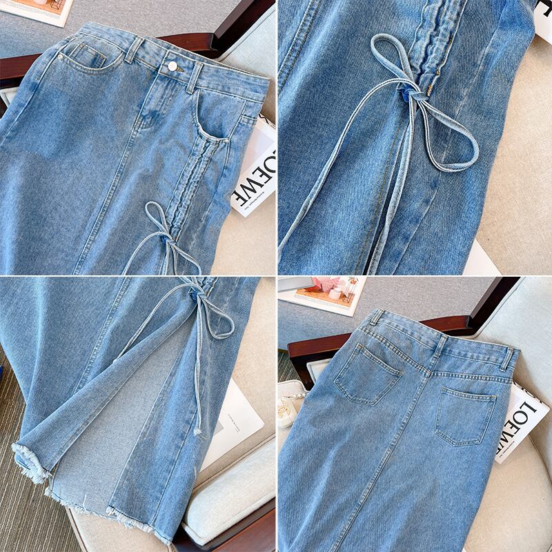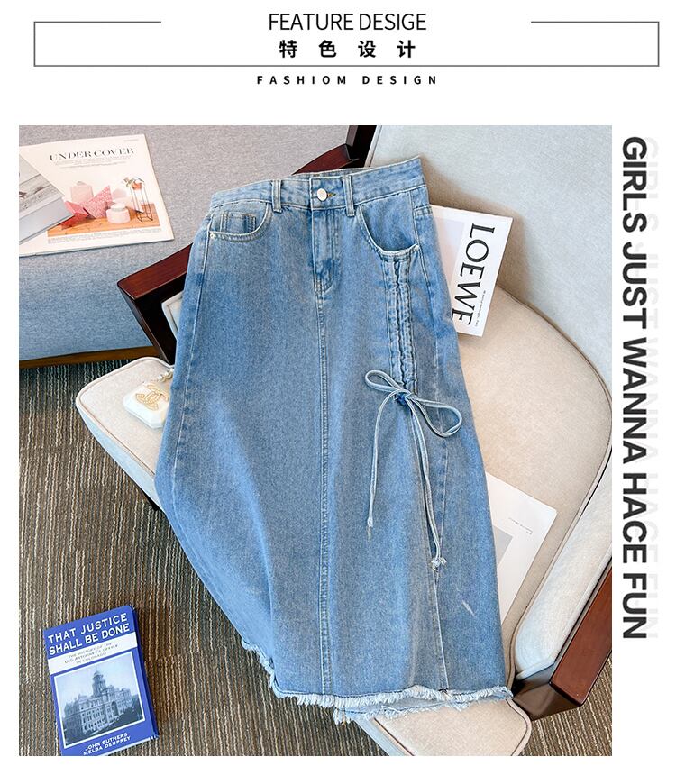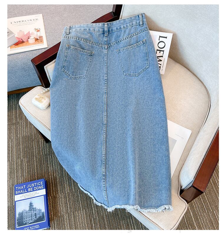 プラスサイズの婦人服 2023 ファットシスター夏の新しいハイウエスト痩身デザインセンスタイスリットデニムスカート ハイウェスト 大きめサイズ サマー 夏物 8884159121003078