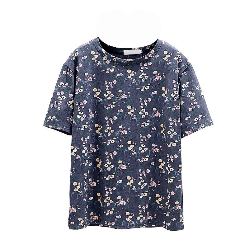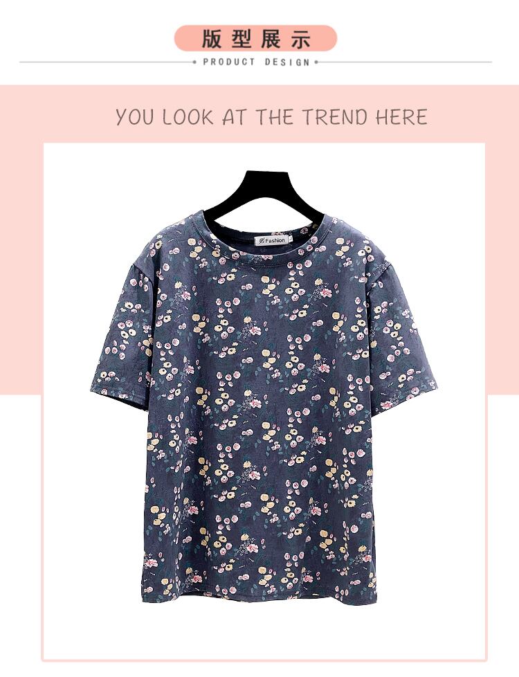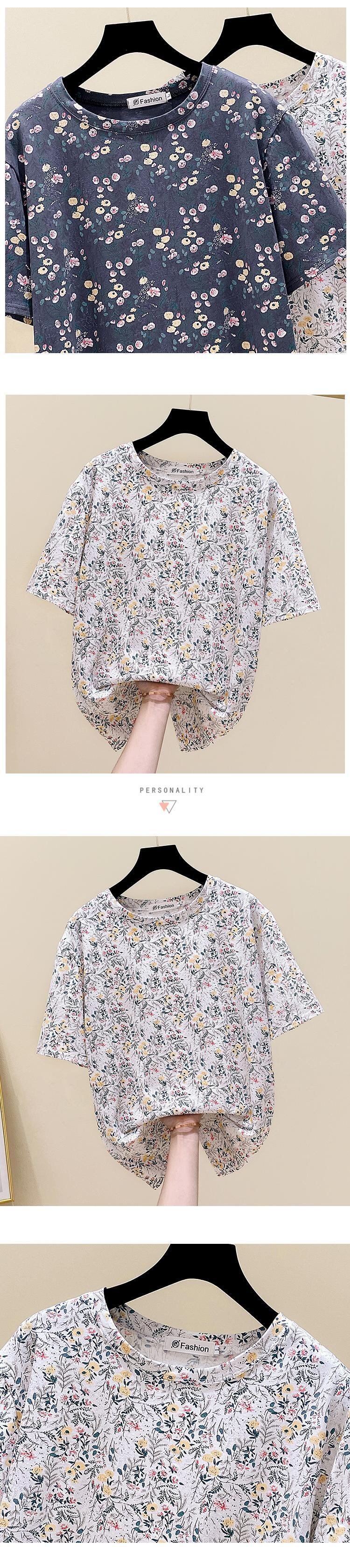 プラスサイズの婦人服 2023 ファットシスター夏の新しいゆったりとした薄い花柄半袖 Tシャツカバー腹気質トップ 大きめサイズ サマー 夏物 8884110027240704