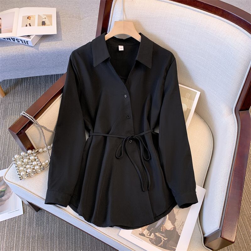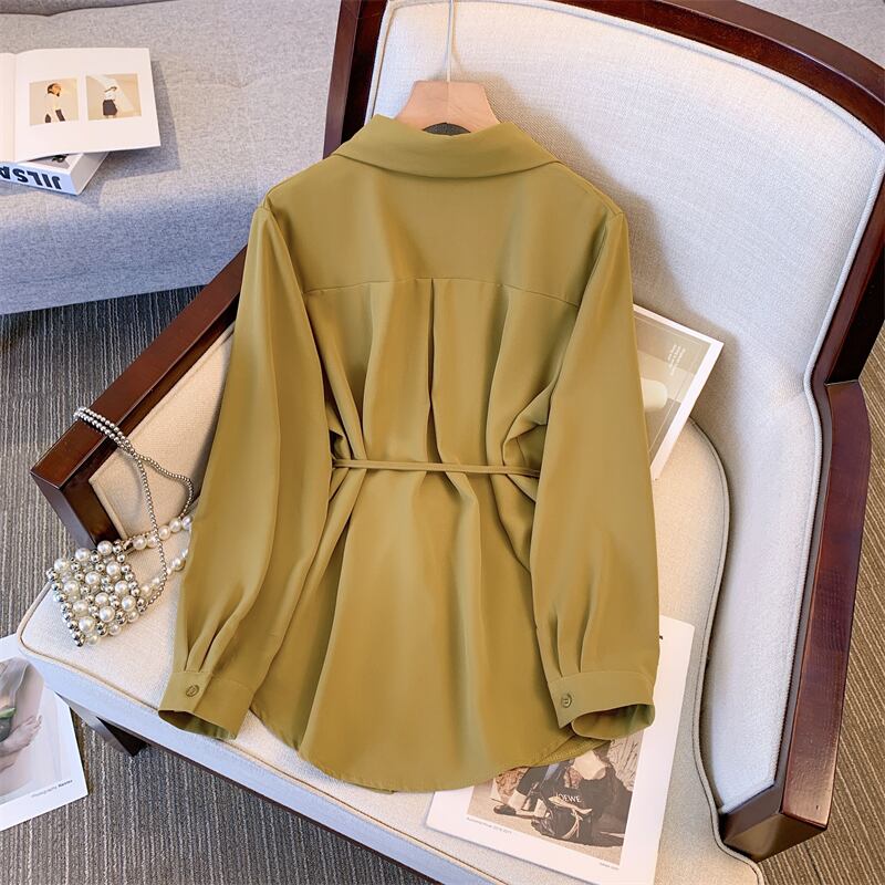 プラスサイズの婦人服 2023 春の新しいファットシスター気質デザインセンスベルトウエスト無地年齢を減らすシャツ 大きめサイズ スプリング 春物 ハーネス ソリッドカラー 8884120826912828