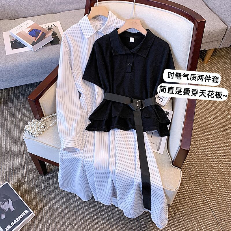 大きいサイズの婦人服 2023 春服ファットシスターズ新しいファッションルーズで薄いトップシャツワンピース 2 点セット 大きめサイズ スプリング 春物 8884162328751764
