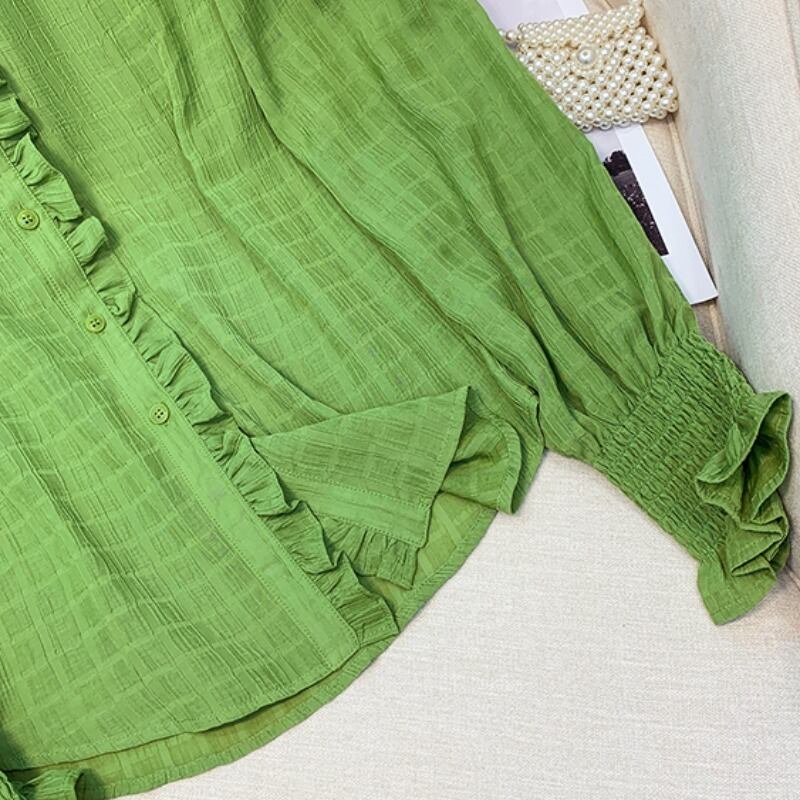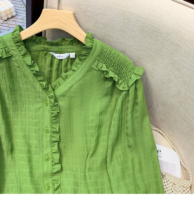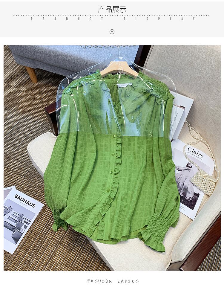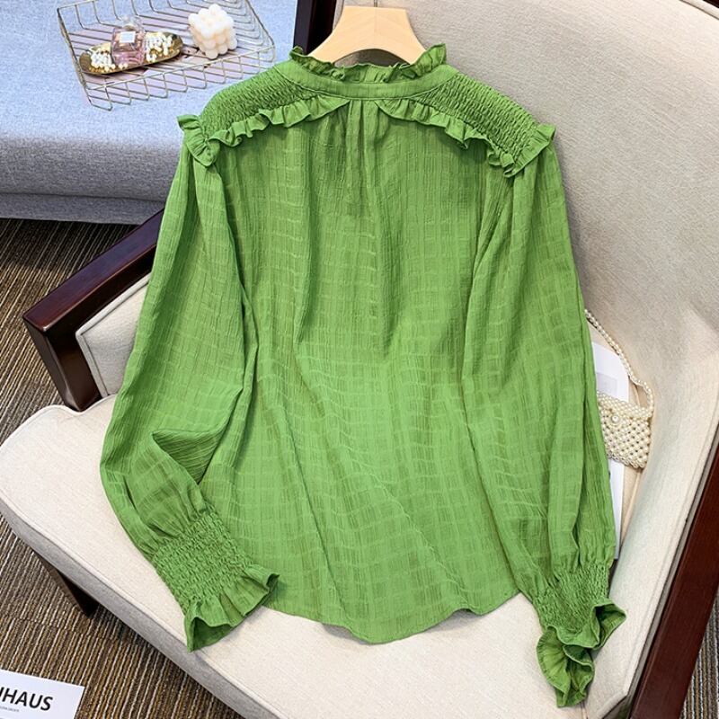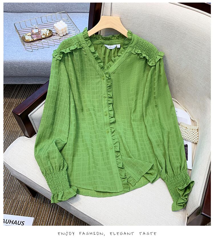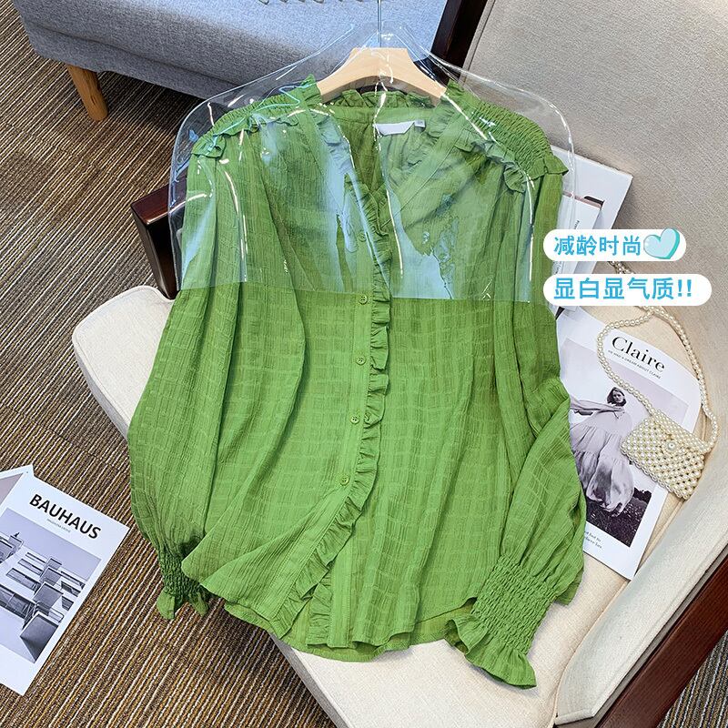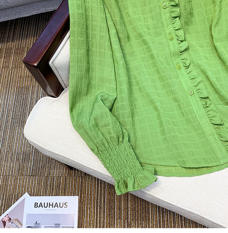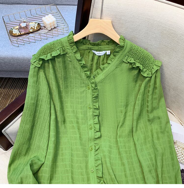 プラスサイズの婦人服 2023 春の新しいスタイルの脂肪姉妹緩いフリルフレンチ長袖スリムなデザインのシャツの女性 ロング 大きめサイズ スプリング 春物 8884199128959644