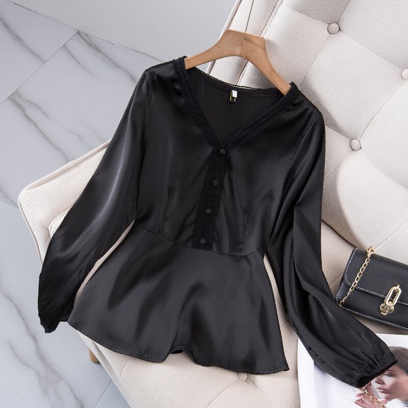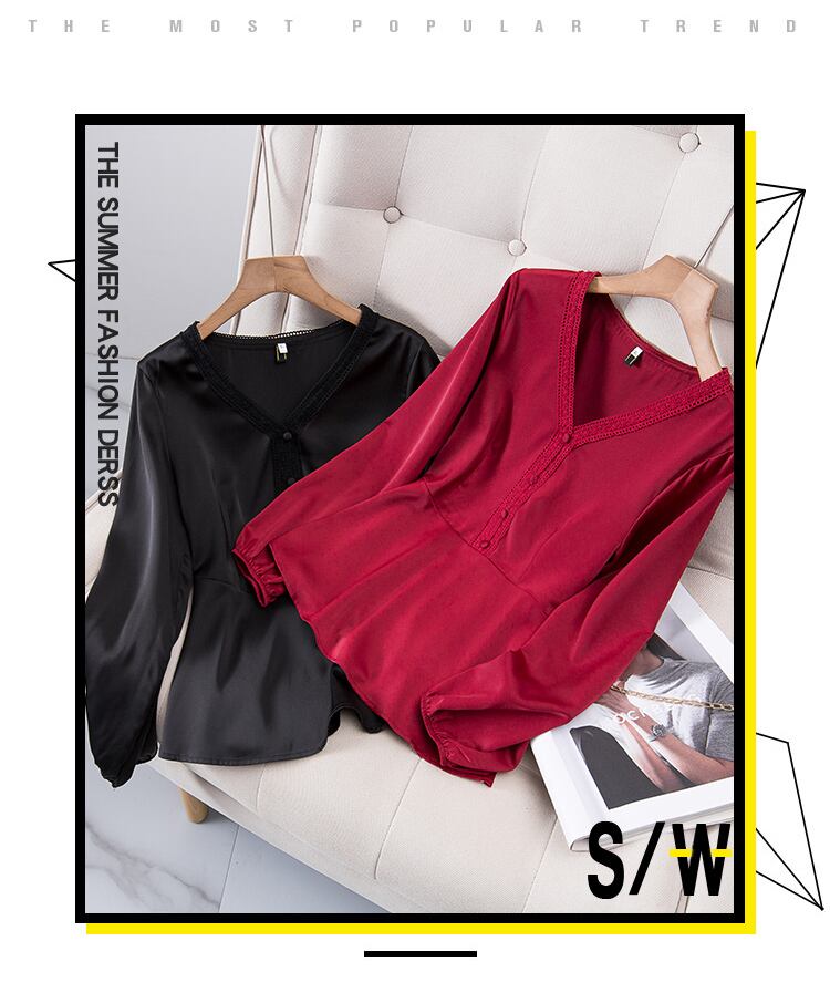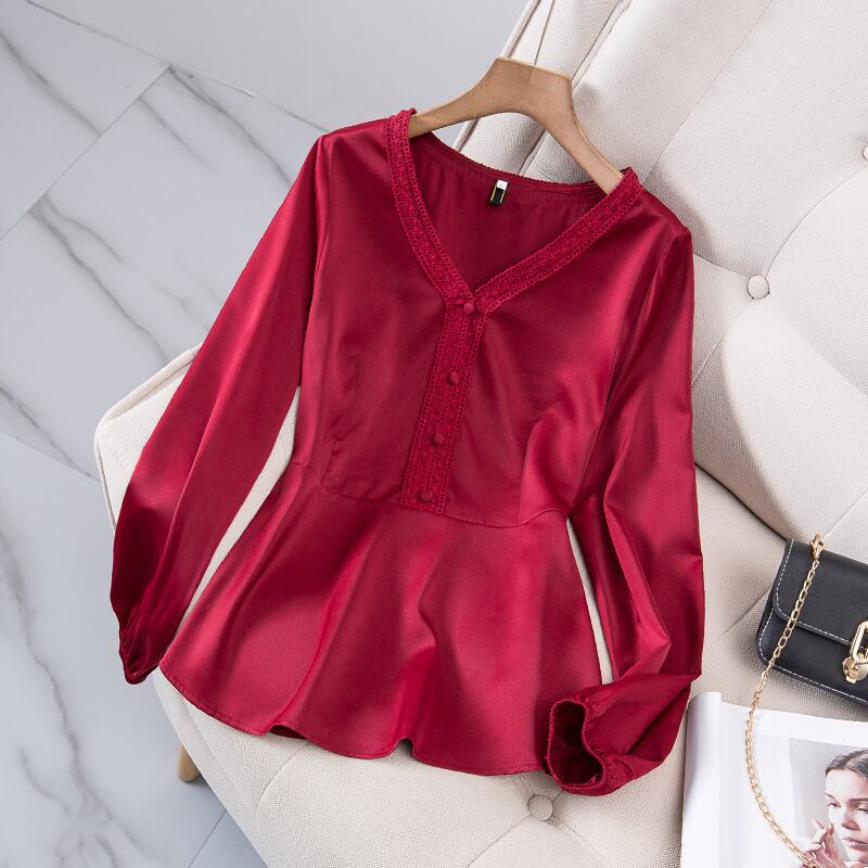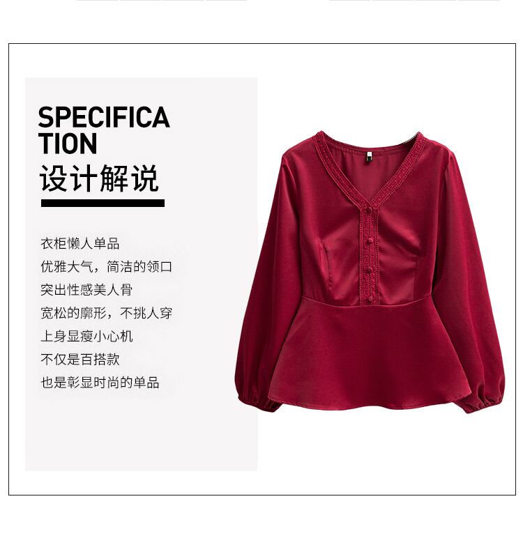 プラスサイズの婦人服 2023 ファットシスター春の新デザインセンスニッチ V ネック年齢減少ウエスト痩身シャツトップ 大きめサイズ スプリング 春物 Vネック 8884139767880980