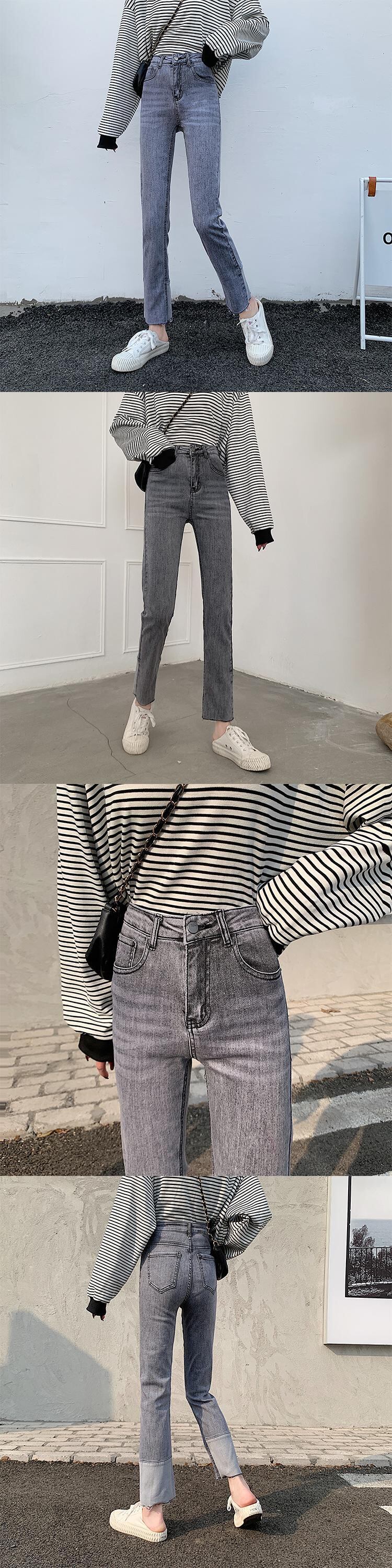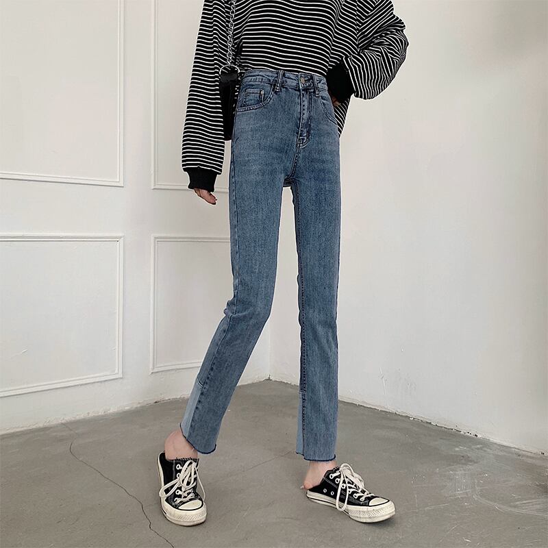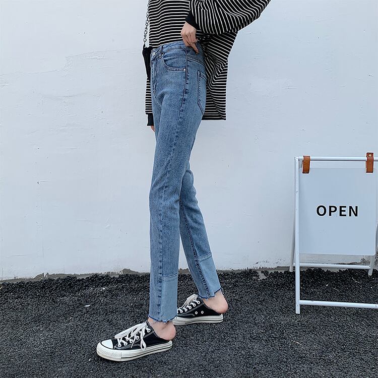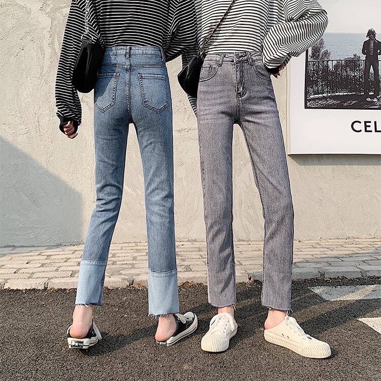 プラスサイズの婦人服 2023 春服脂肪姉妹新しいアンチボトムステッチジーンズ弾性ストレートシガレットパンツ エラスティック 伸縮 大きめサイズ スプリング 春物 888415770808890