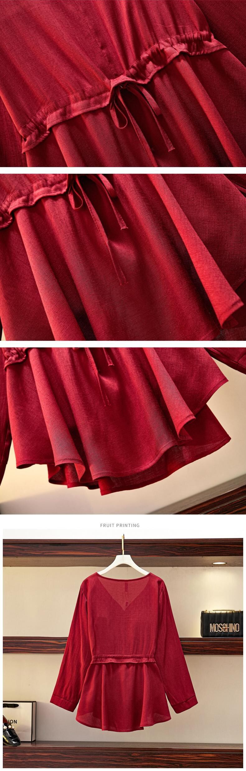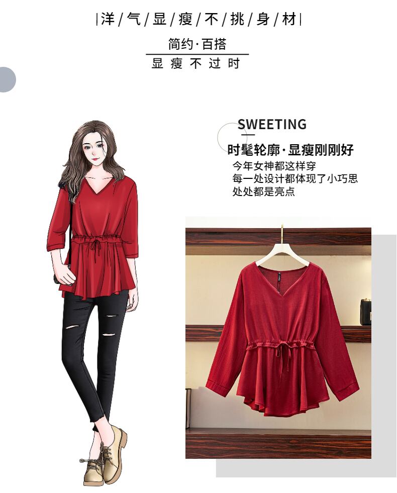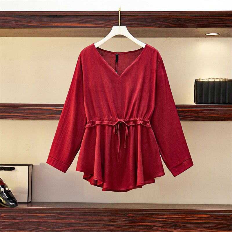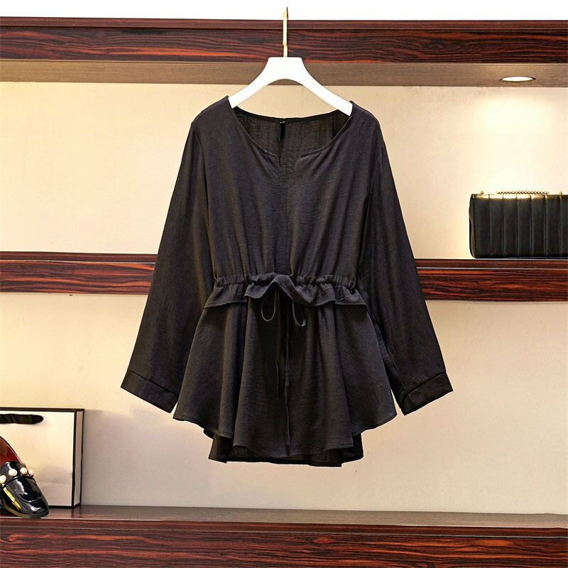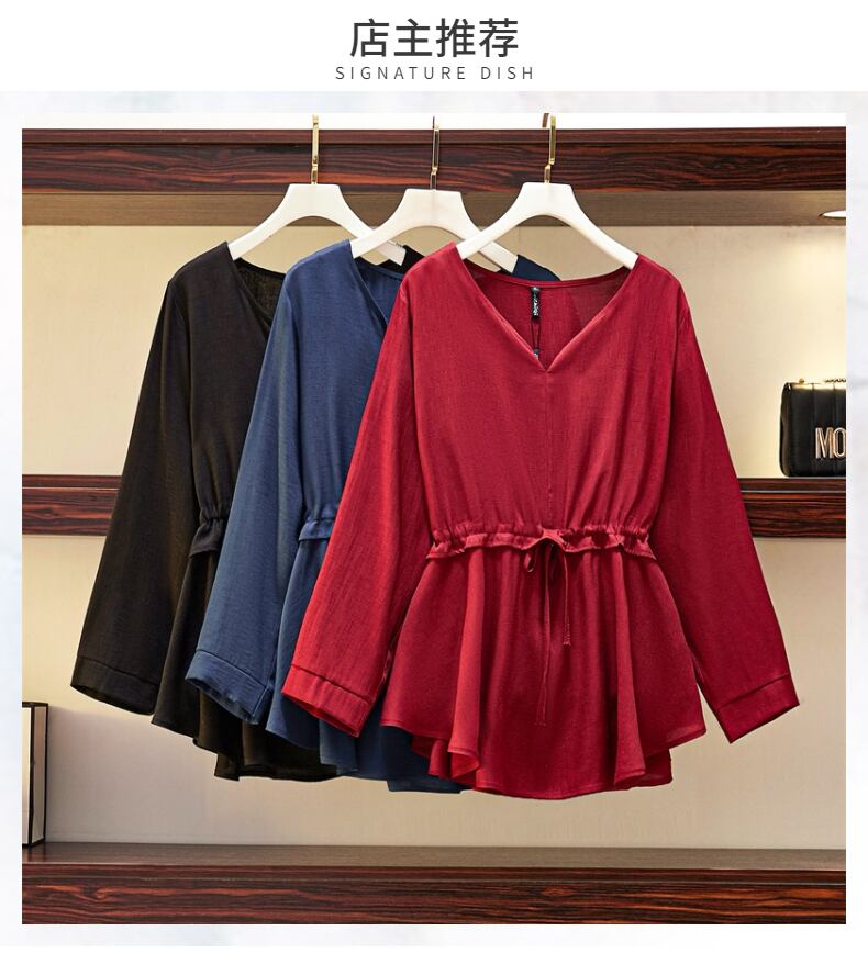 プラスサイズの婦人服 2023 トレンディな女性の春の新しい太った姉妹バージョンウエストカバー腹洋式痩身老化シャツトップ 大きめサイズ スプリング 春物 8884146670245139