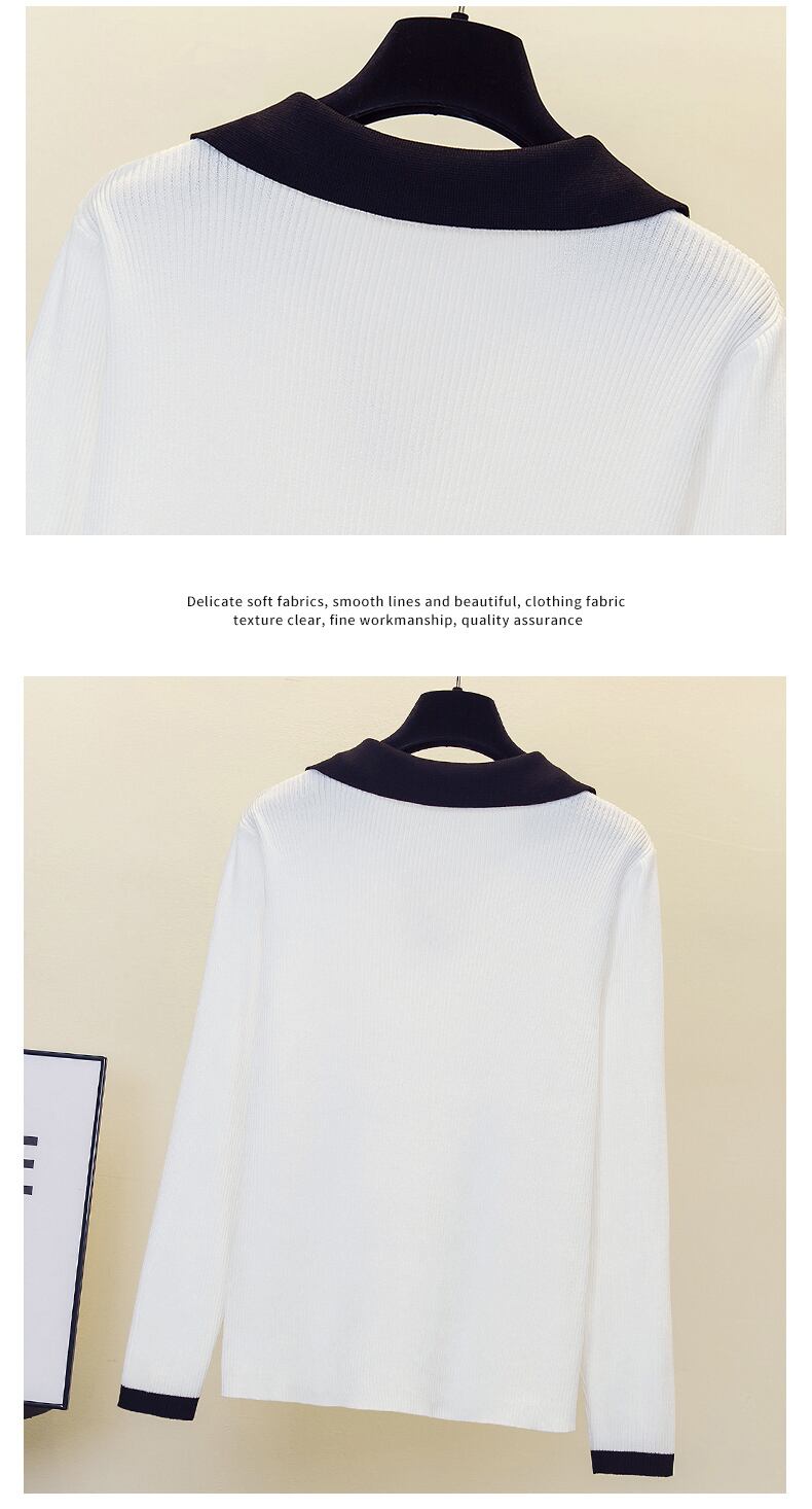プラスサイズの婦人服 2023 ファットシスター春の新ファッションコントラストカラー痩身ニットセーターセーター底入れシャツトップ 大きめサイズ スプリング 春物 8884157848437925