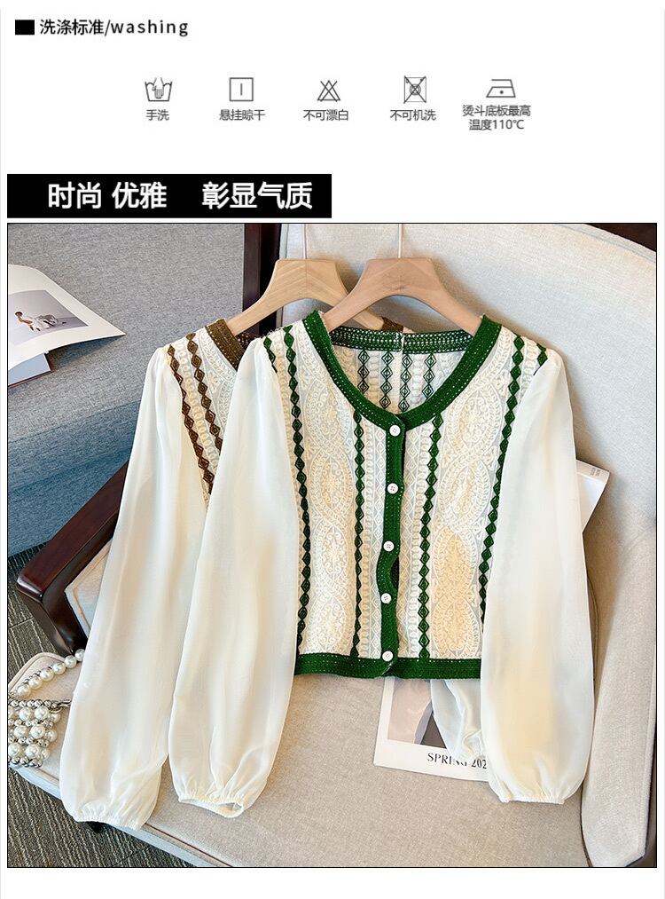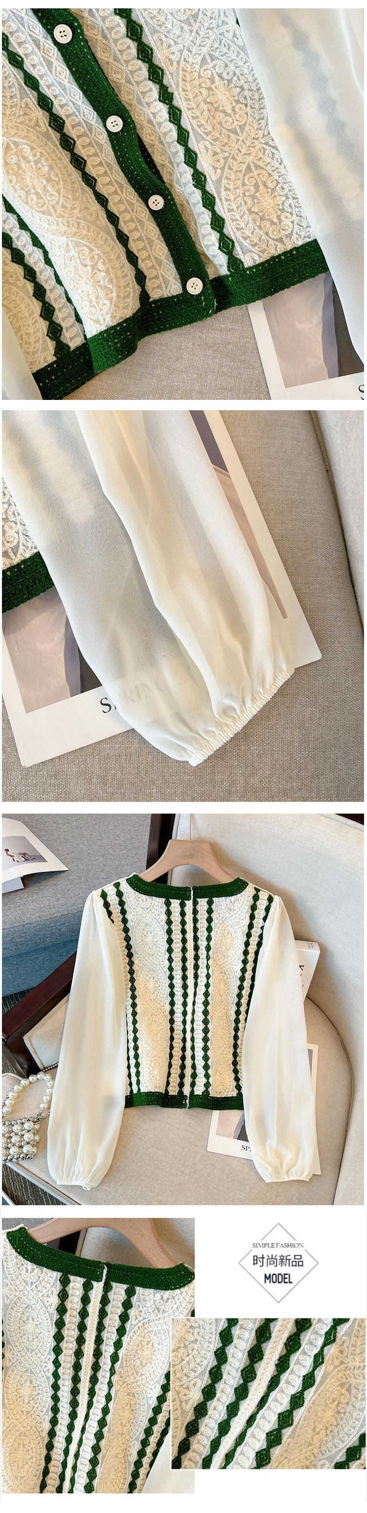 大サイズの婦人服 2023 春服脂肪姉妹新ファッションニットメッシュ V ネック中空スプライシングトップ女性 大きめサイズ スプリング 春物 Vネック 888413314266735