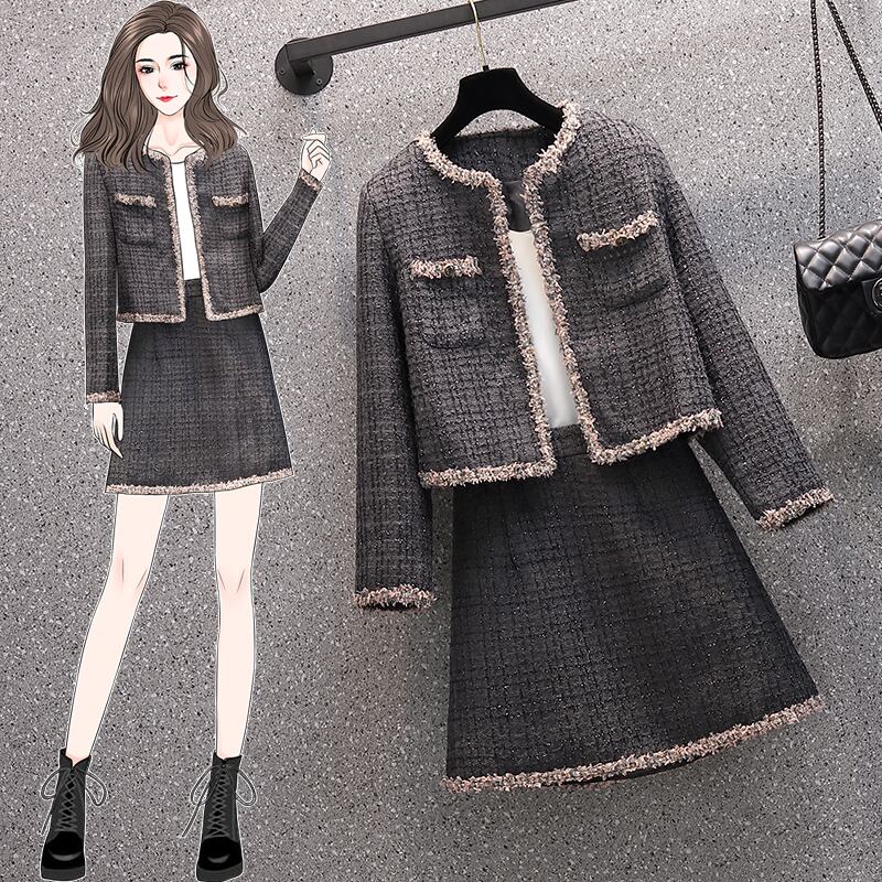 プラスサイズの婦人服 2023 ファットシスター春の新気質年齢減少薄いツイードジャケットスカート 2 点セット 大きめサイズ スプリング 春物 8884113194959796