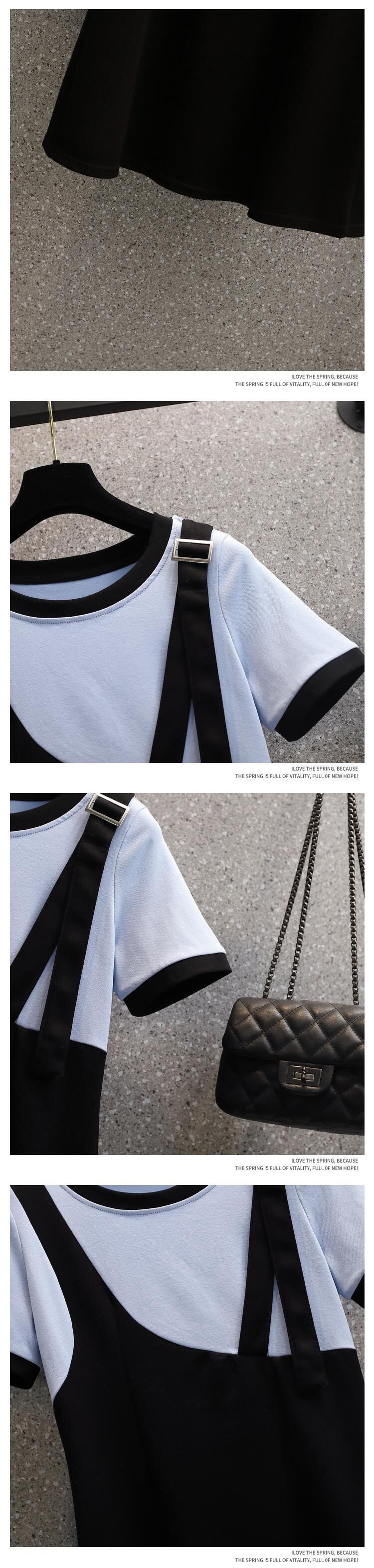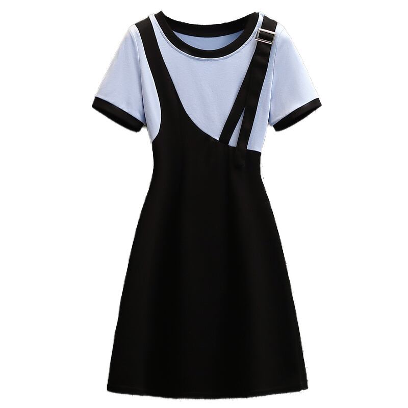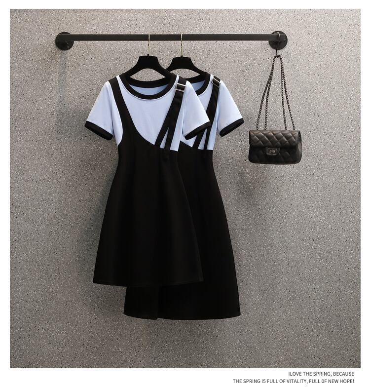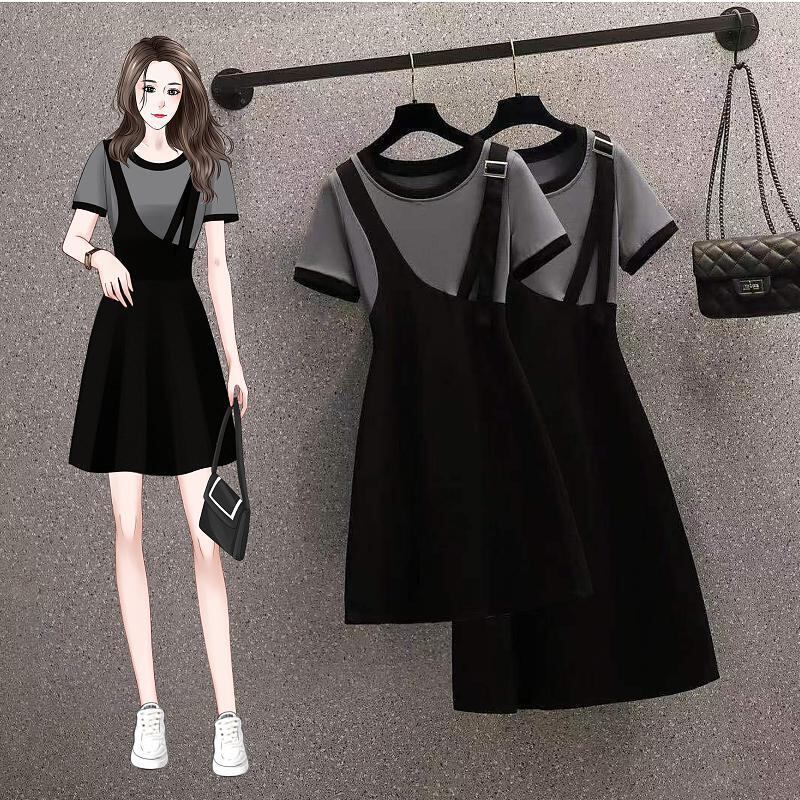 プラスサイズの婦人服 2023 夏の新しい太った姉妹の年齢を減らす気質のシックなウエストウエストフェイクツーピースオールマッチドレス 大きめサイズ サマー 夏物 8884186601903978