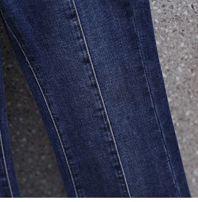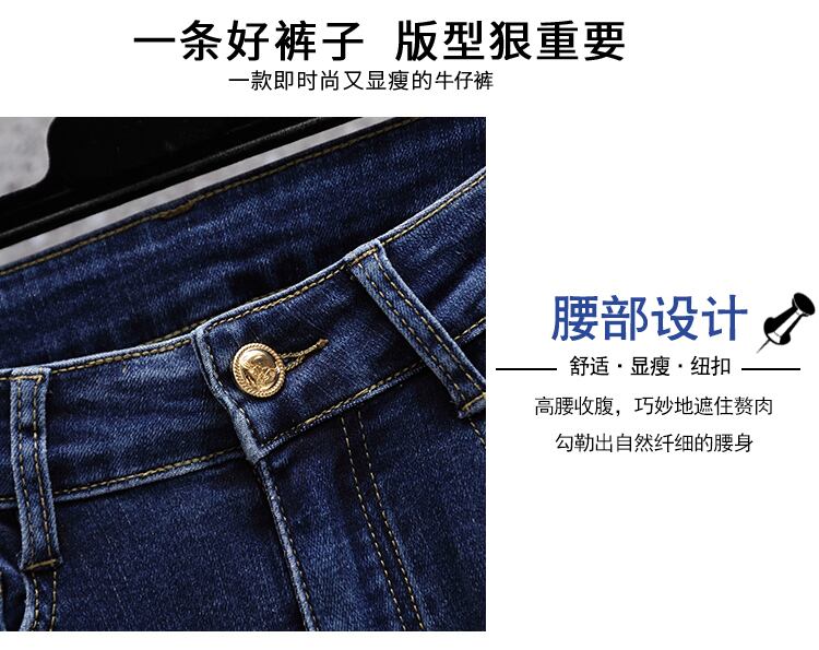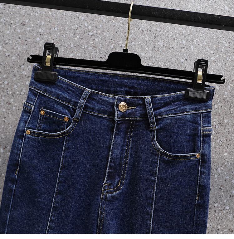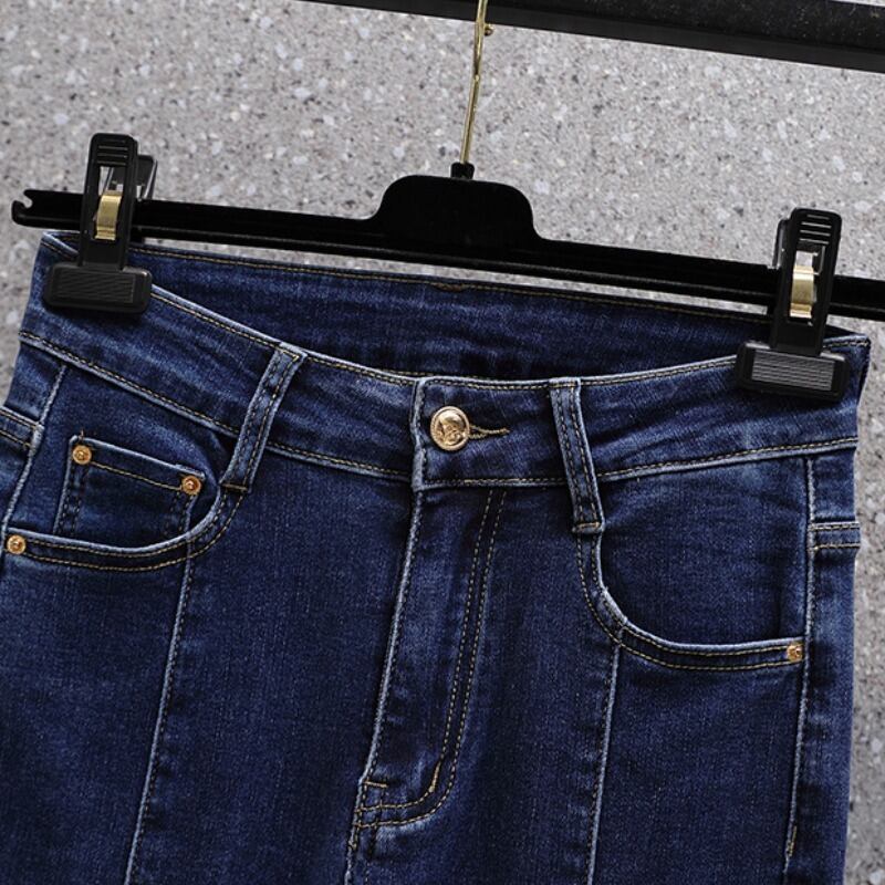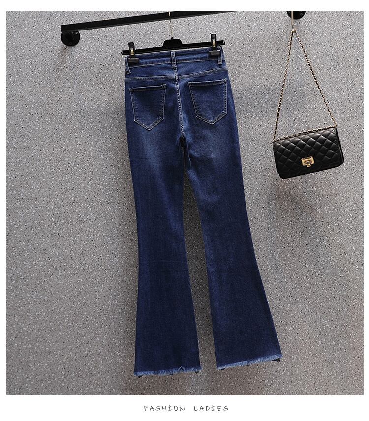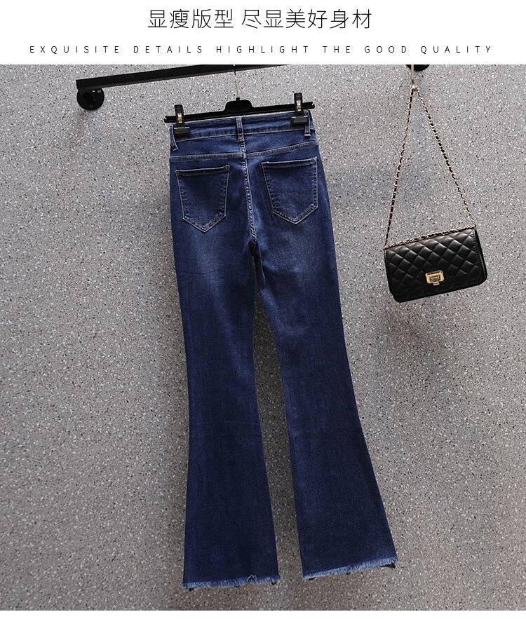 プラスサイズの婦人服 2023 春の新スタイル脂肪姉妹弾性ファッションハイウエストカジュアルスリムデニムマイクロブーツパンツ ハイウェスト エラスティック 伸縮 大きめサイズ スプリング 春物 8884166980776803