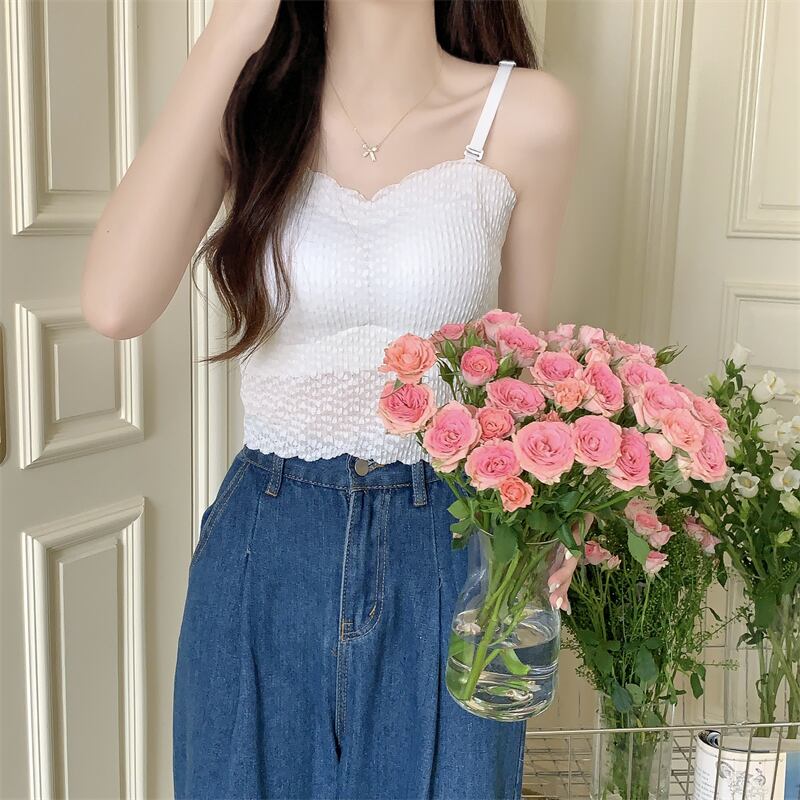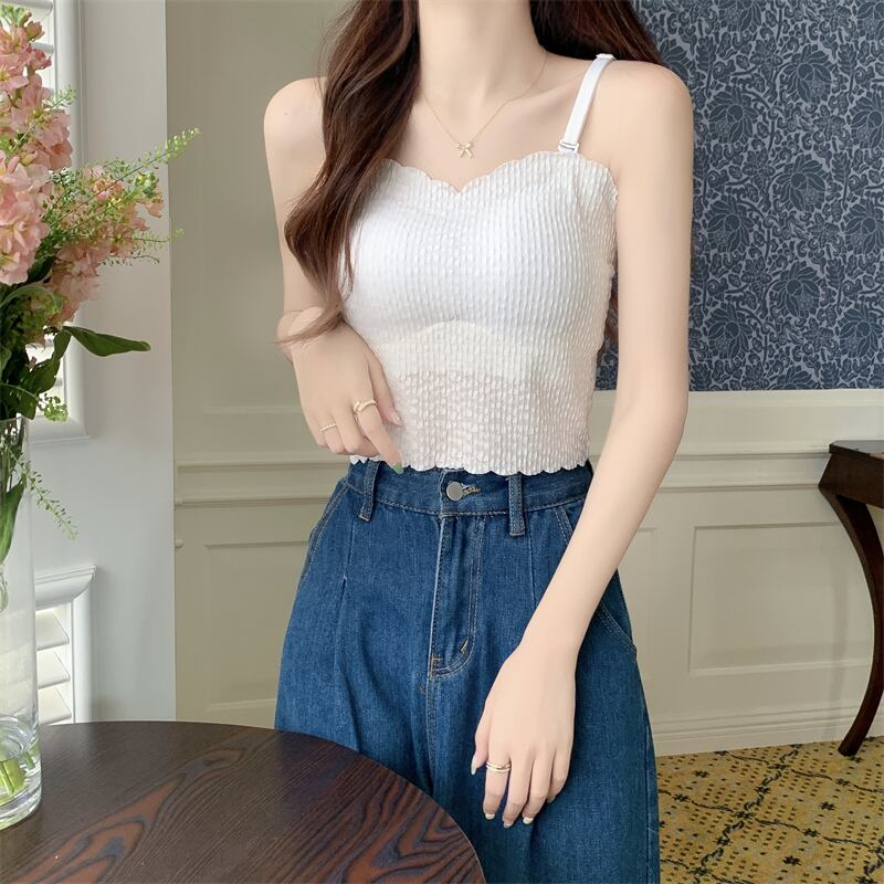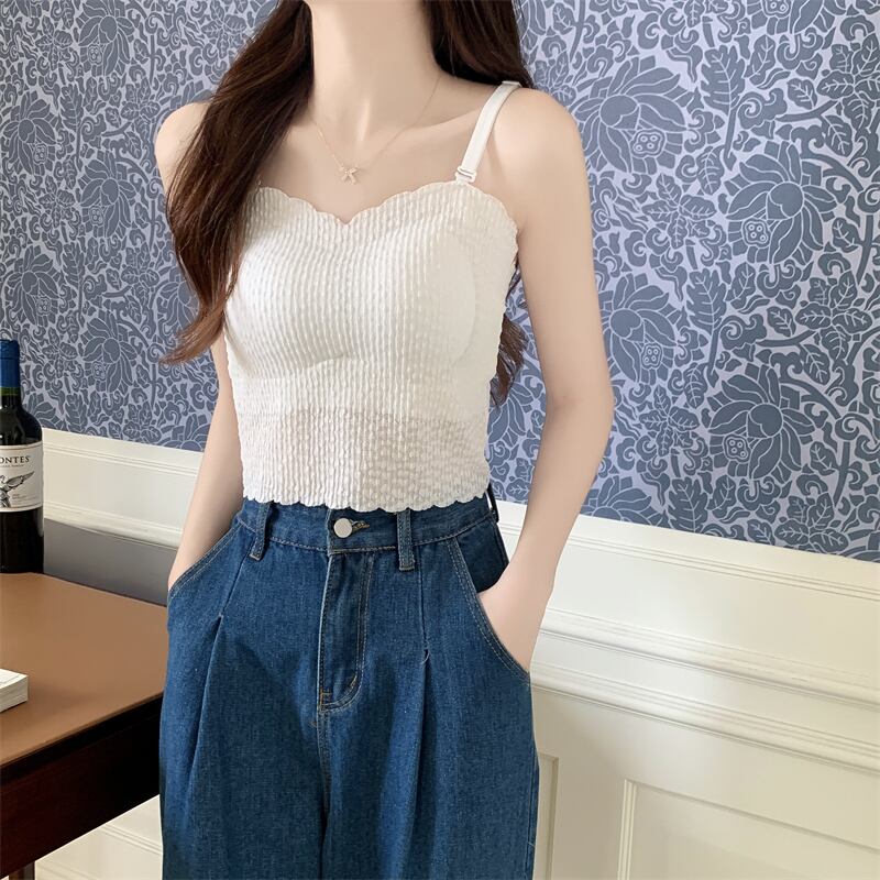 プラスサイズの婦人服 2023 ファットシスター夏新美しいバックスリング薄いベストレースベルト胸パッドベースチューブトップ 大きめサイズ サマー 夏物 ハーネス 8884149551300784