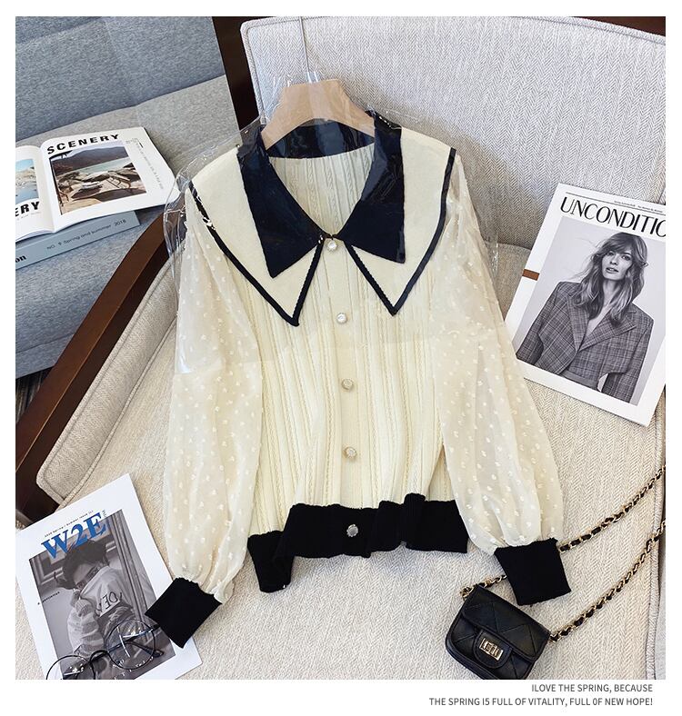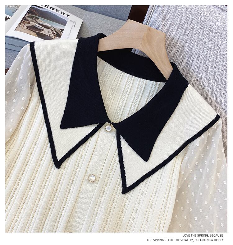 プラスサイズの婦人服 2023 春の新脂肪姉妹 eign スタイル人形の襟フレンチレースステッチ腹カバーニットセーター女性 大きめサイズ スプリング 春物 8884183658099144