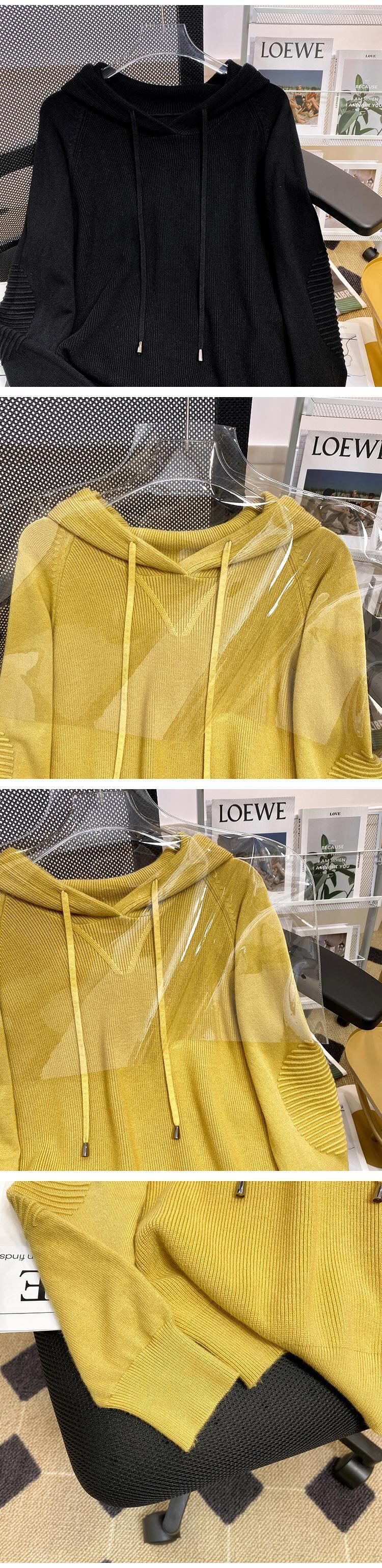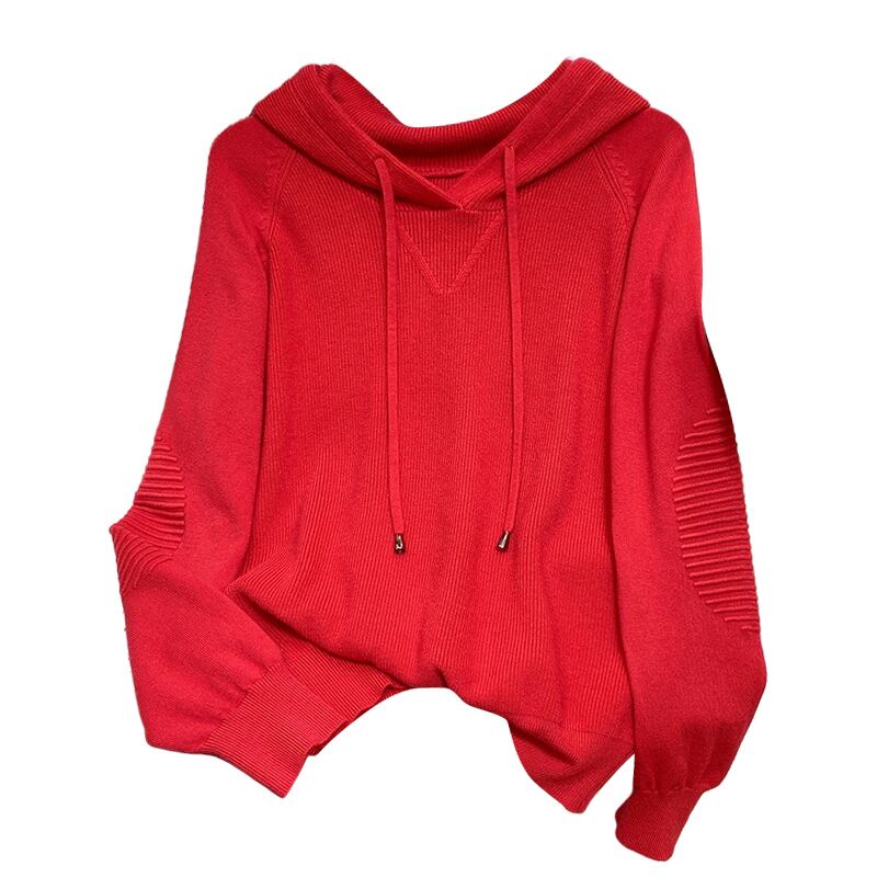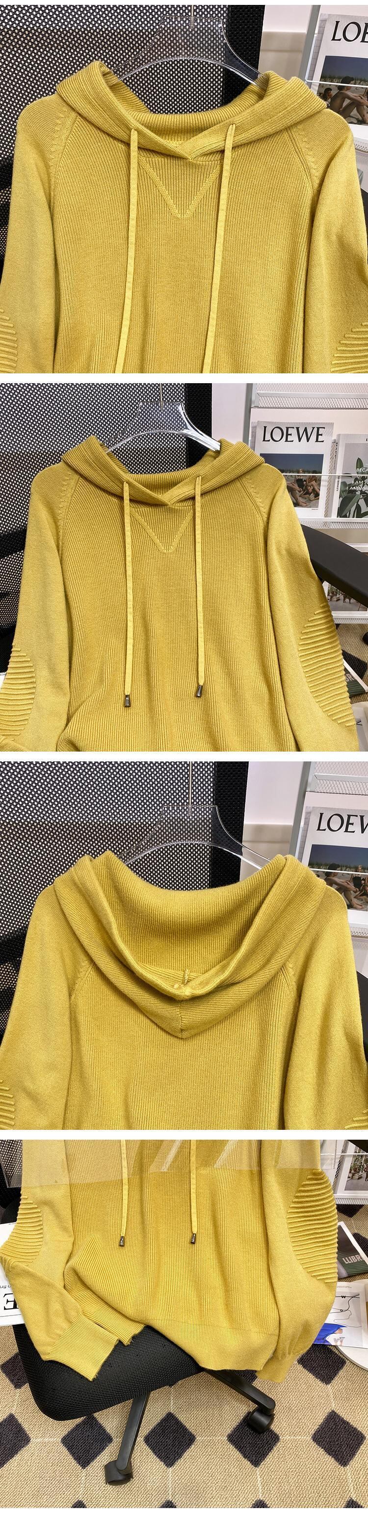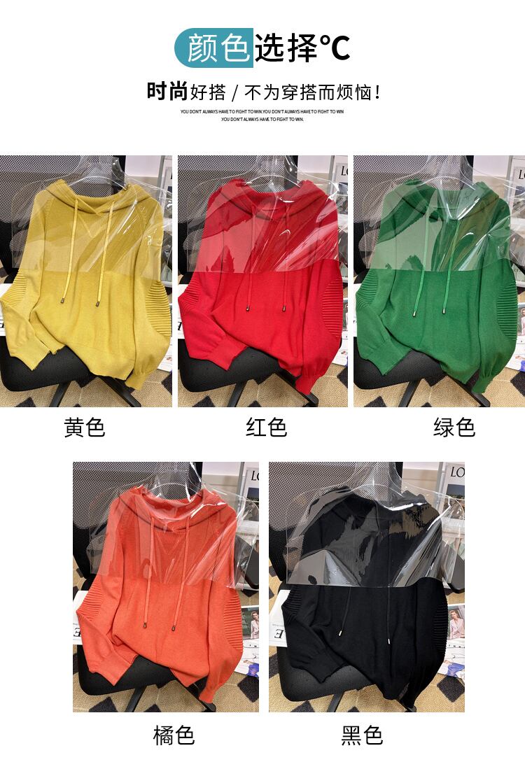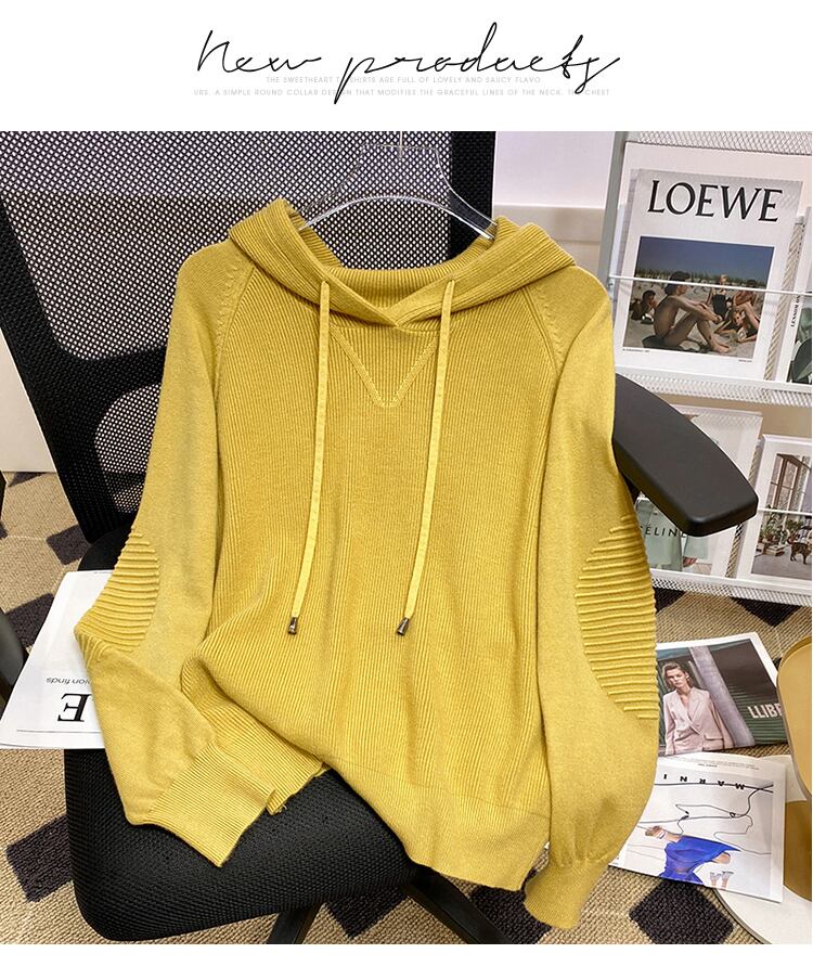 大きいサイズの婦人服 2023 春の新しい太った姉妹のファッション緩い無地フード付きデザイン感覚の肉を覆うニットセーターの女性 大きめサイズ スプリング 春物 ソリッドカラー 8884141631380063