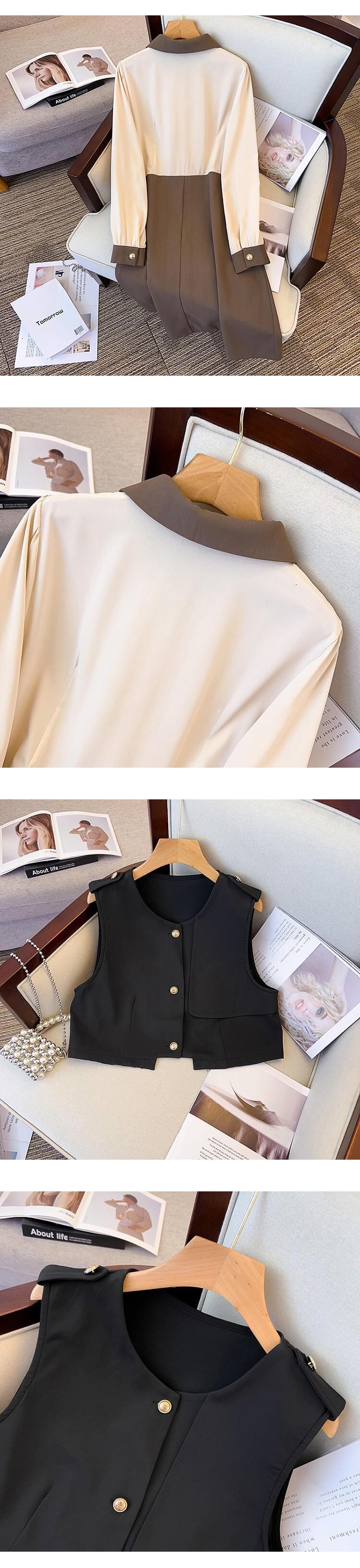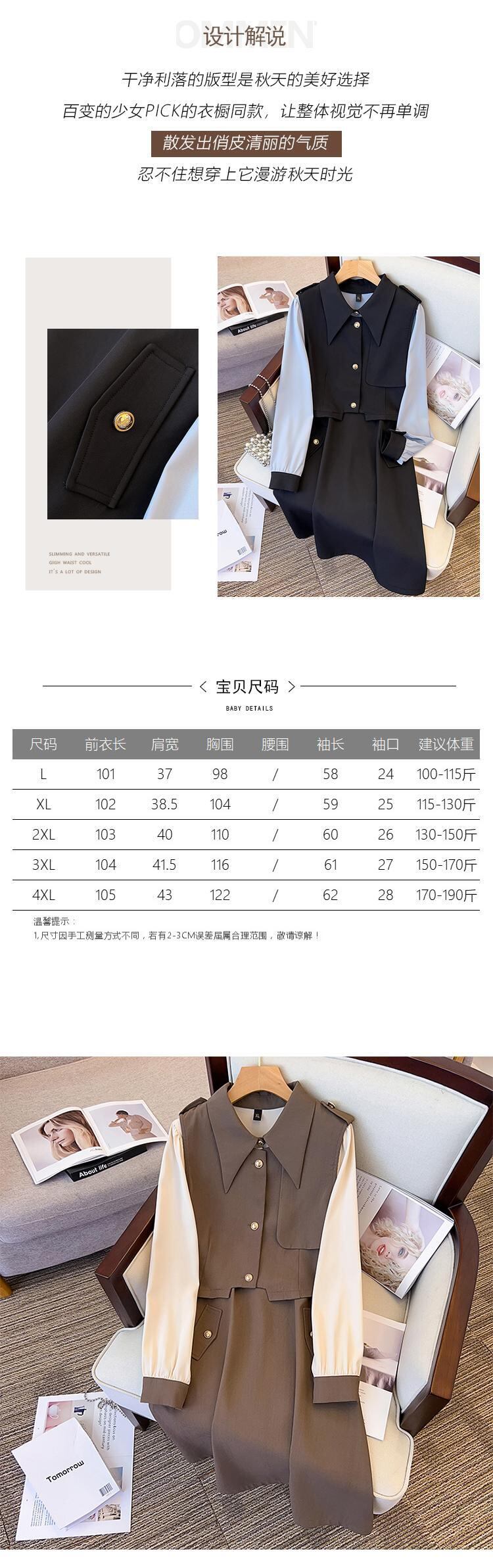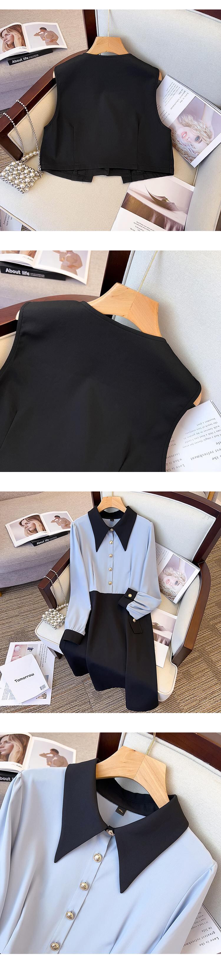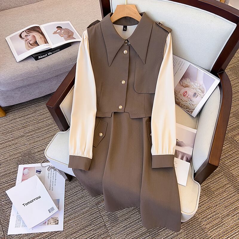 プラスサイズの婦人服 2023 ファットシスター春の新バージョンフレンチレトロラペルベストドレスツーピースセット 大きめサイズ スプリング 春物 8884199839167836