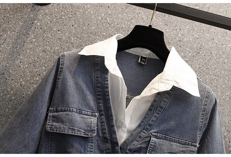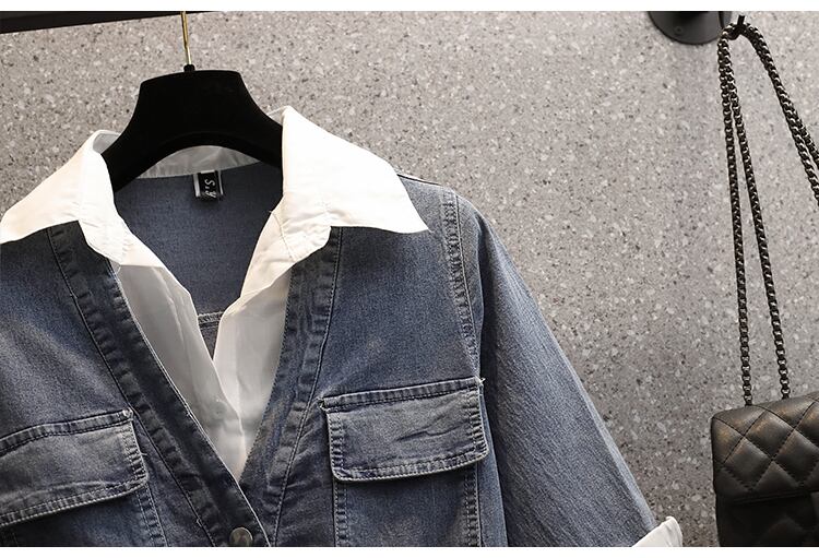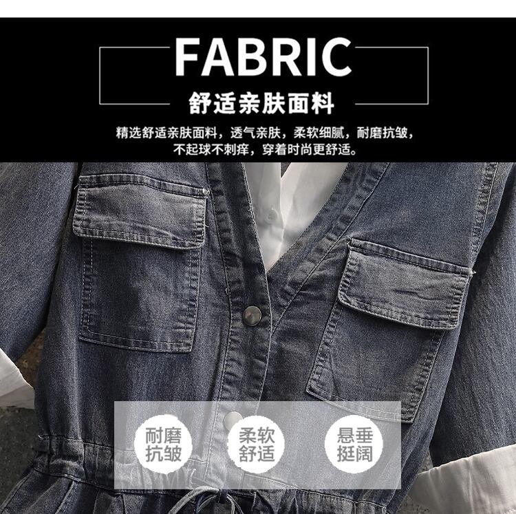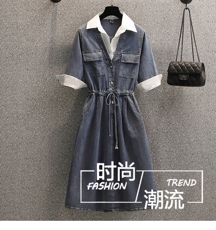 プラスサイズの婦人服 2023 トレンディな女性の夏の新しい脂肪姉妹気質スプライシング偽のツーピースのファッション年齢を減らすデニムドレス 大きめサイズ サマー 夏物 8884196187481187