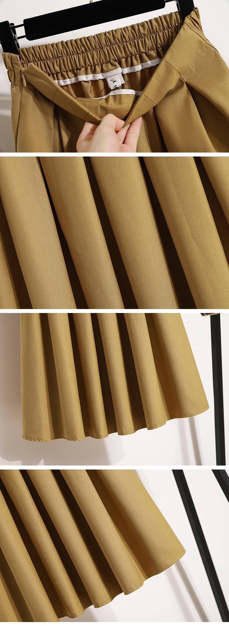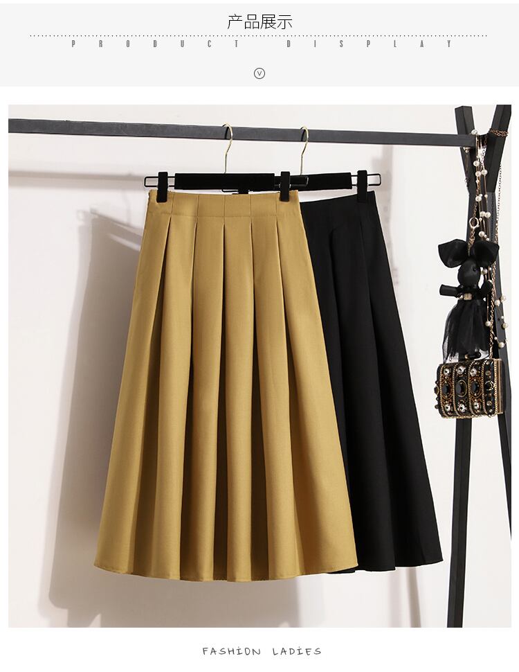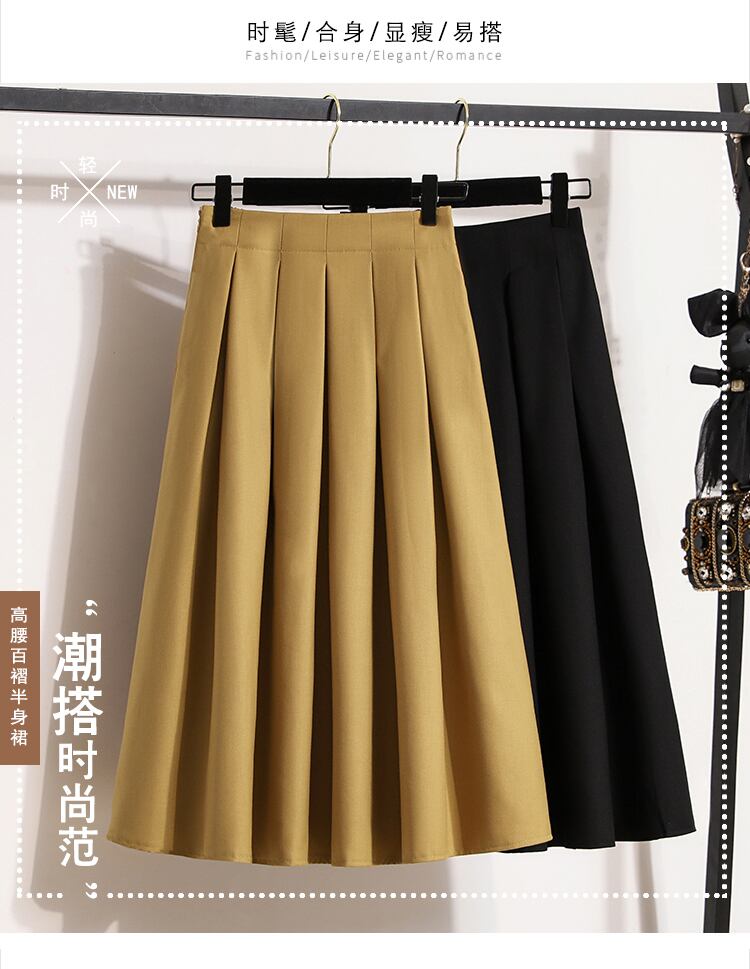 プラスサイズの婦人服 2023 春の新しいファットシスターハイウエストオールマッチ無地ファッションプリーツヒップカバー気質スカート ハイウェスト 大きめサイズ スプリング 春物 ソリッドカラー 8884136838593434