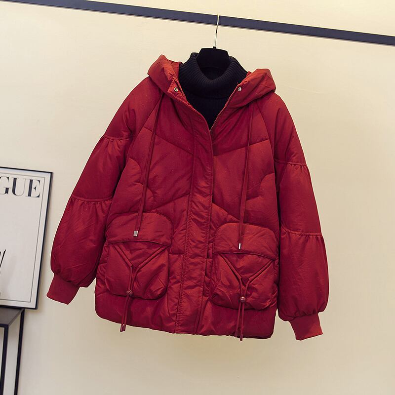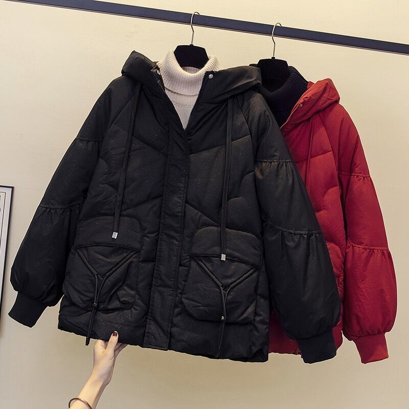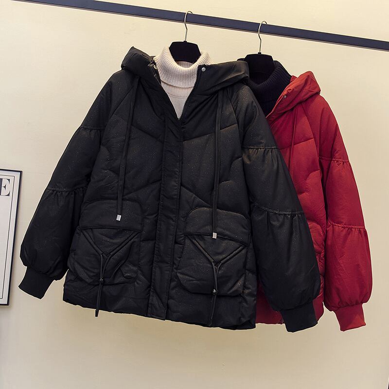 2022プラスサイズの女性の冬服の新しいスタイルのゆったりとした薄いカバー肉の西洋スタイルのオールマッチフード付きダウンパッド入りジャケットトレンディ 大きめサイズ ウィンター 冬物 8884178562961062