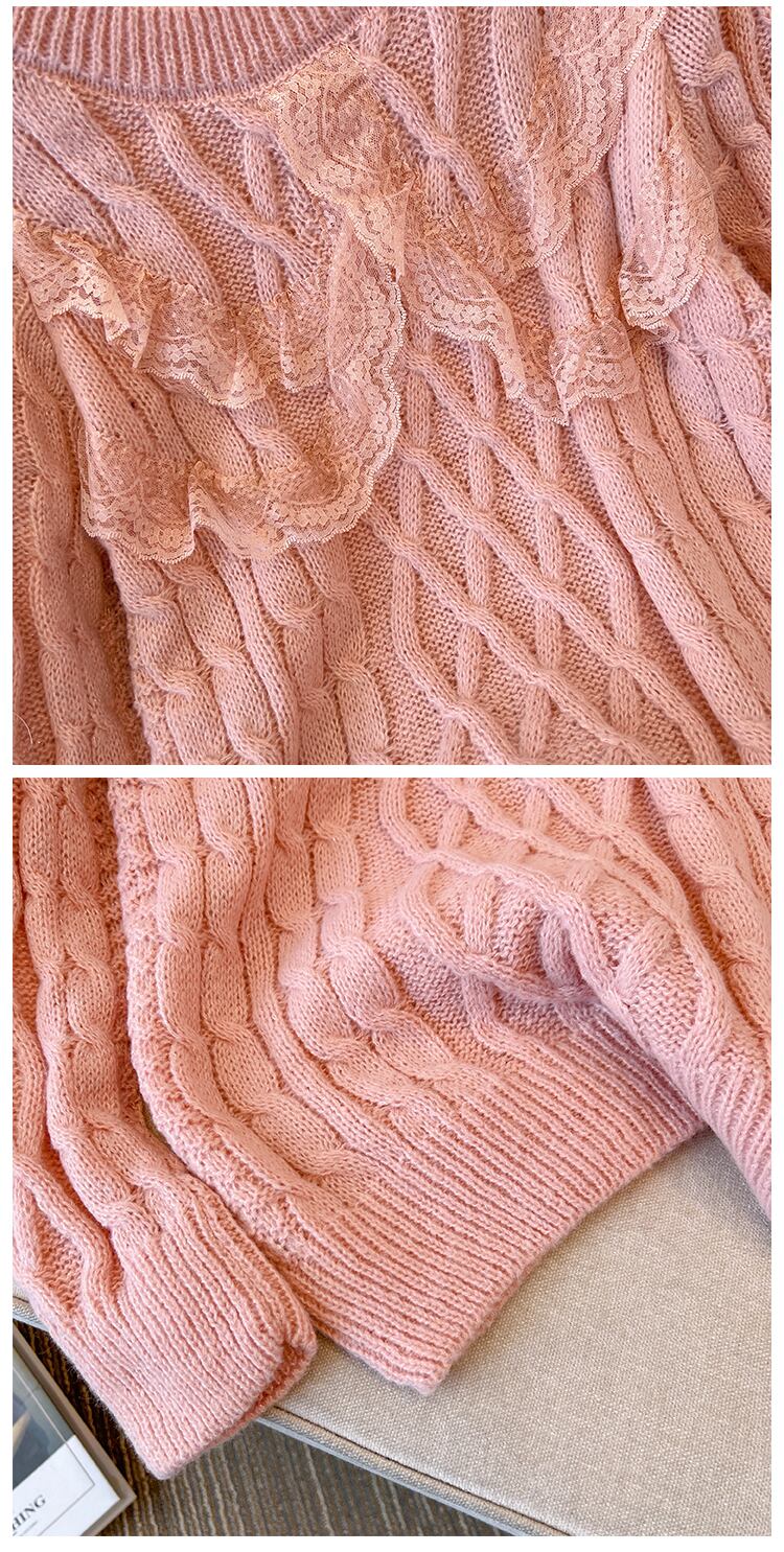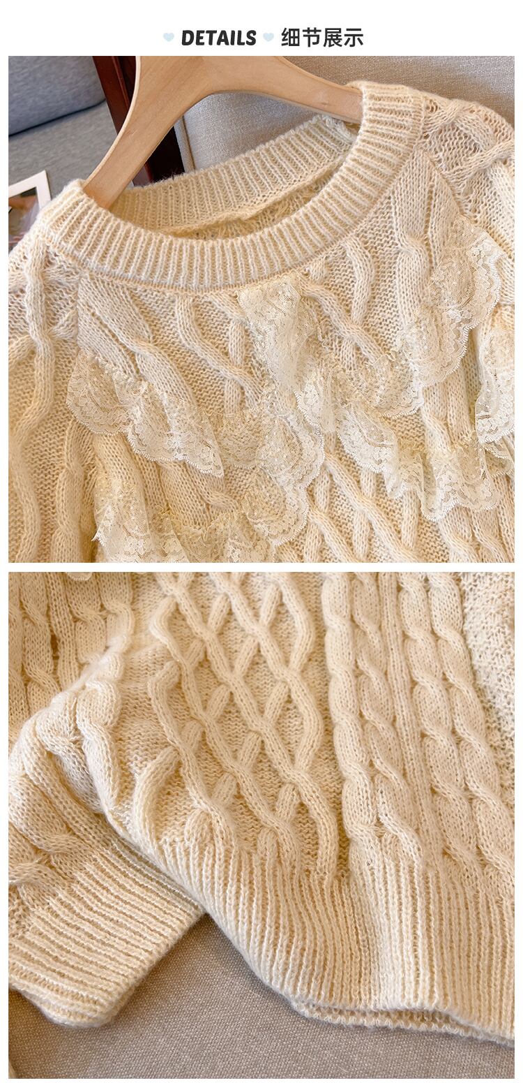 プラスサイズの婦人服 2023 春の新スタイルファットシスターゆるい洋風オールマッチツイストステッチレースカバー肉セーター女性 大きめサイズ スプリング 春物 8884153422578325