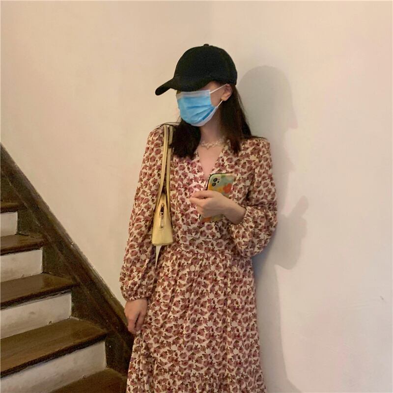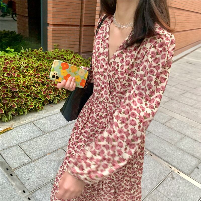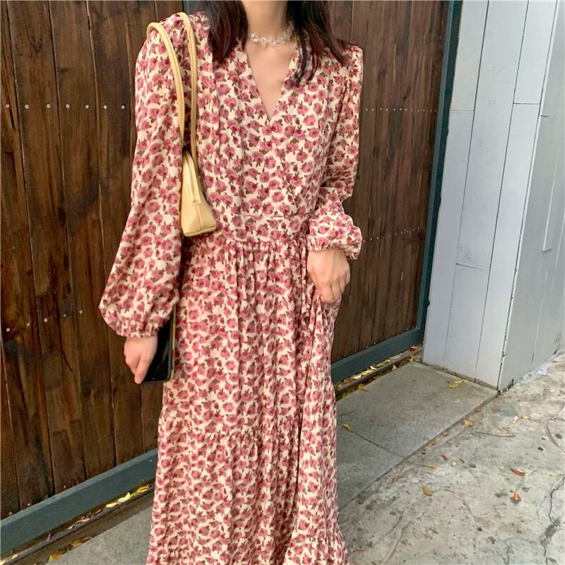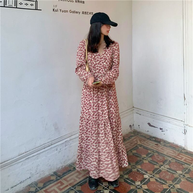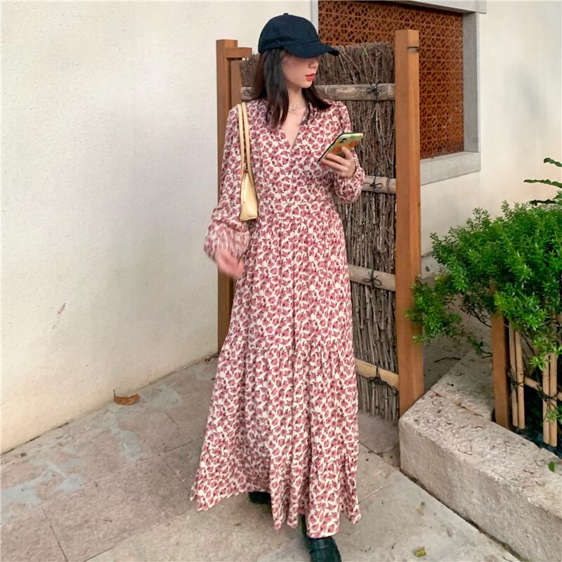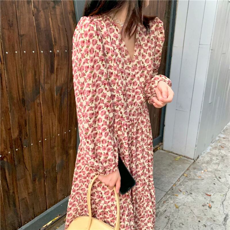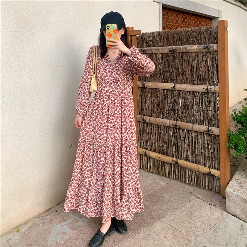 プラスサイズの婦人服 2023 ファットシスター春の新しいフレンチスタイルの甘いシフォンドレス長袖花柄ドレス ロング 大きめサイズ 大人ガーリー スウィート キュート カジュアル スプリング 春物 8884157069723278