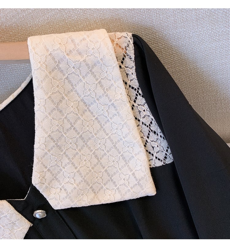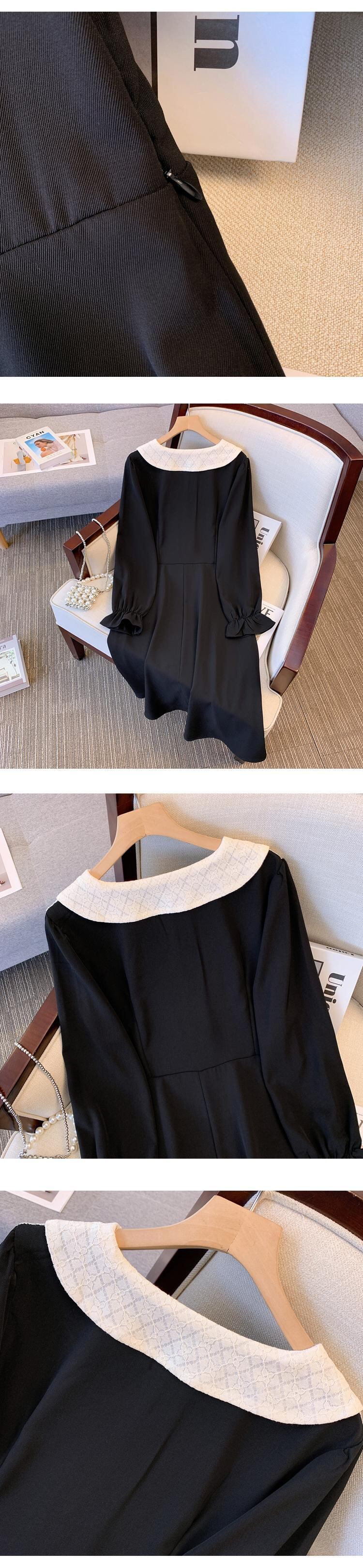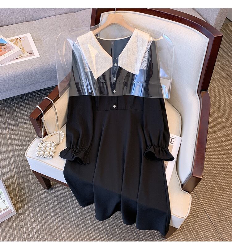 大きいサイズの婦人服 2023 春服ファットシスターズ新しい eign スタイルフレンチスタイルの人形の襟スリムウエスト長袖ドレス ロング 大きめサイズ スプリング 春物 8884190400091347