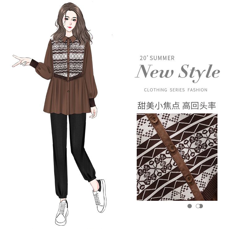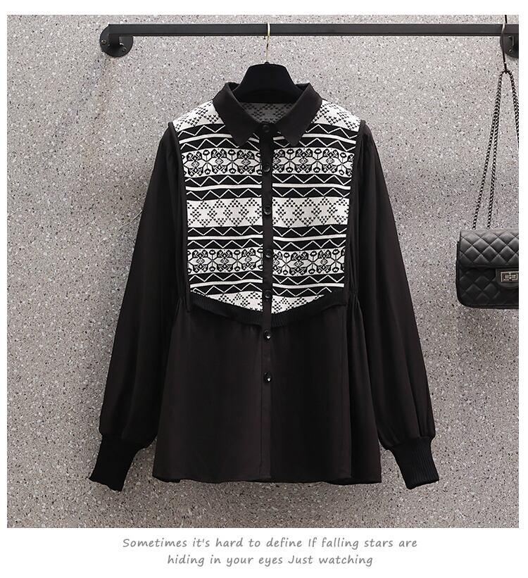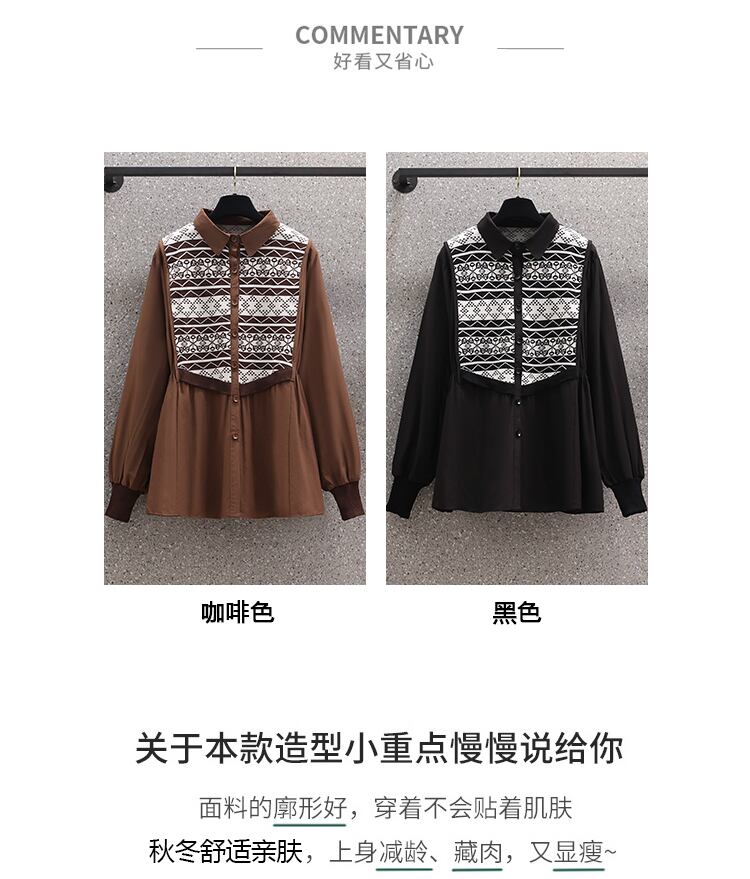 大きいサイズの婦人服 2023 春服ファットシスターズ新時代のリデュースルーズカジュアルレトロデザインスプライシングシャツ女性 大きめサイズ スプリング 春物 8884182429916210