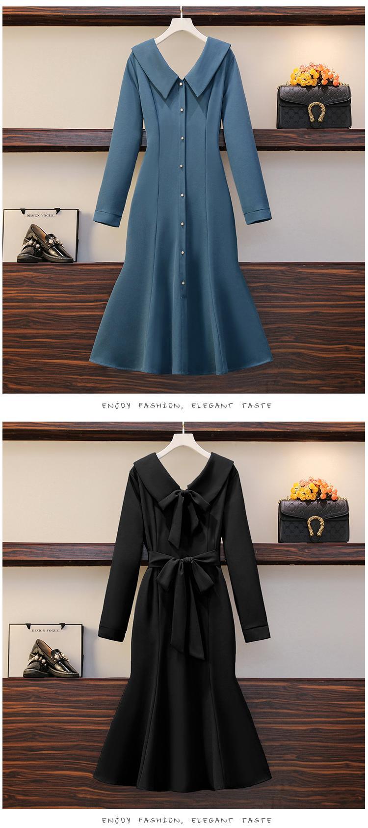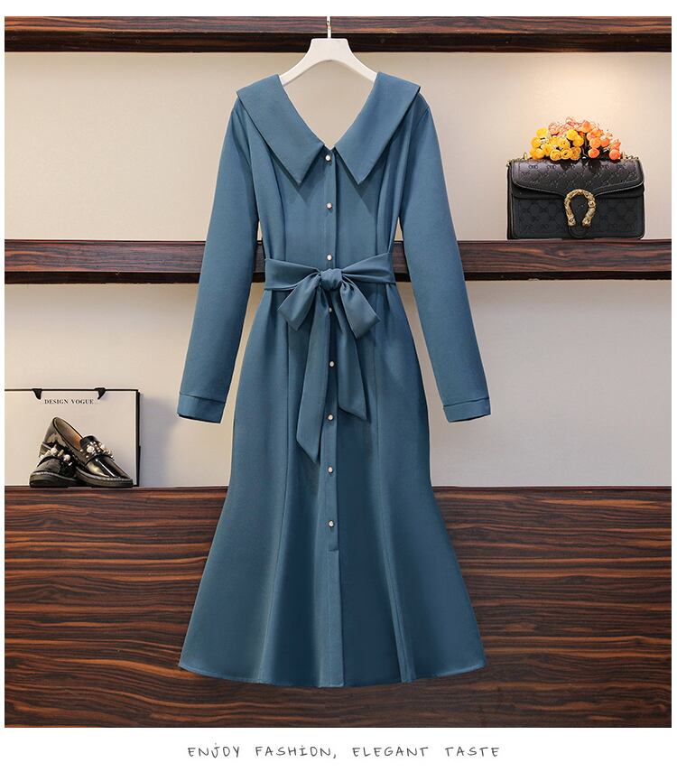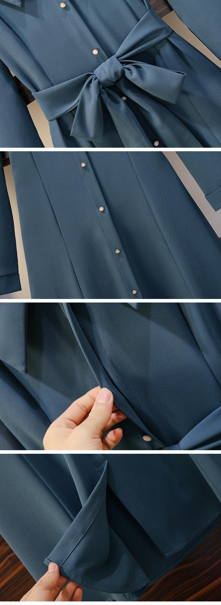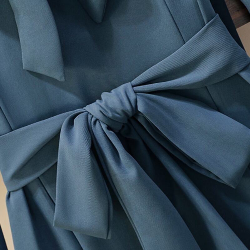 プラスサイズの婦人服 2023 春の新しい太った姉妹フランスの弓 v ネック気質カジュアルな腹を覆うドレス リボン 大きめサイズ スプリング 春物 Vネック 8884157603760458