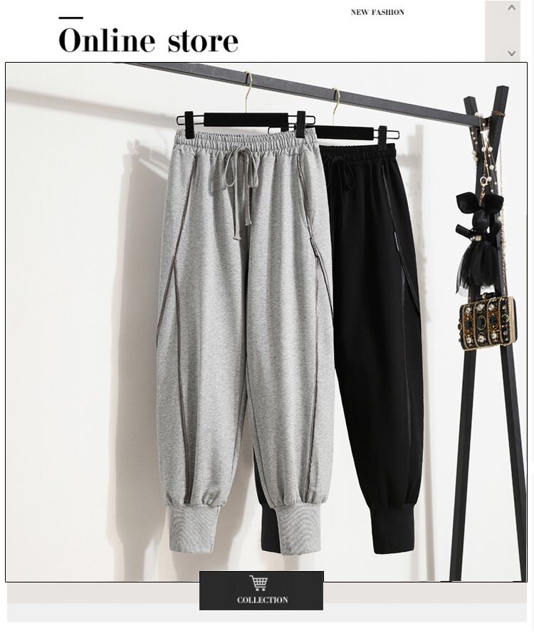 大きいサイズの婦人服 2023 春の新しいルーズ フィット痩身と年齢を減らすカジュアル スポーツ オールマッチ レギンス パンツ女性 大きめサイズ スプリング 春物 8884157513780306