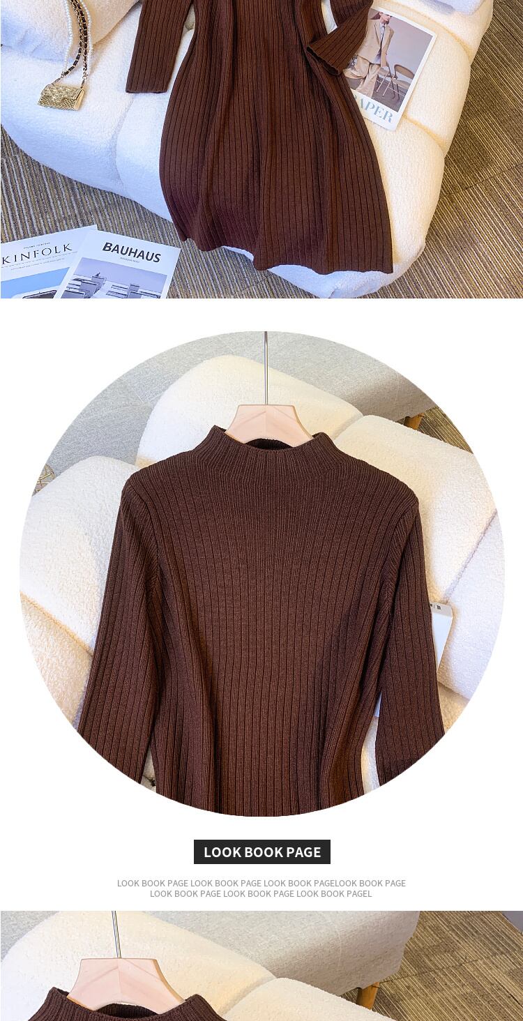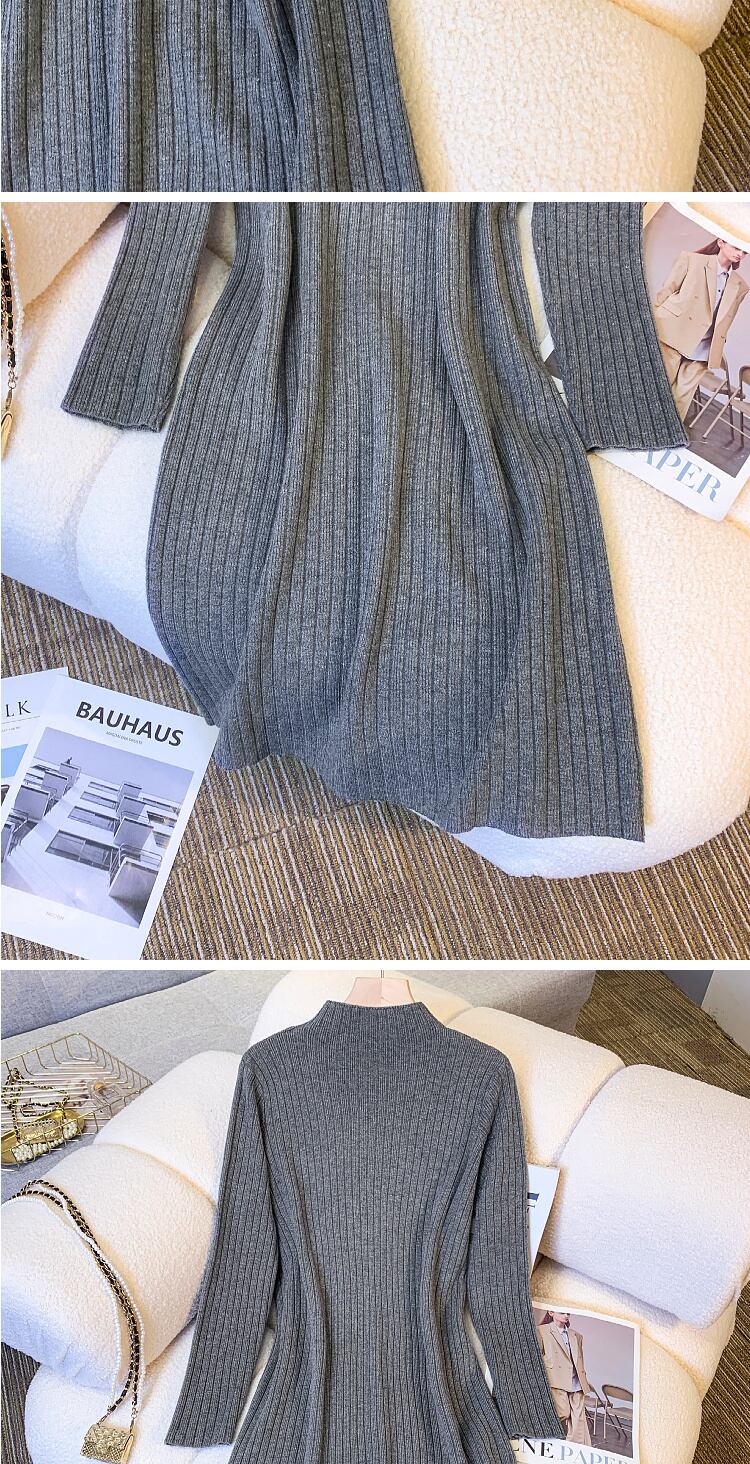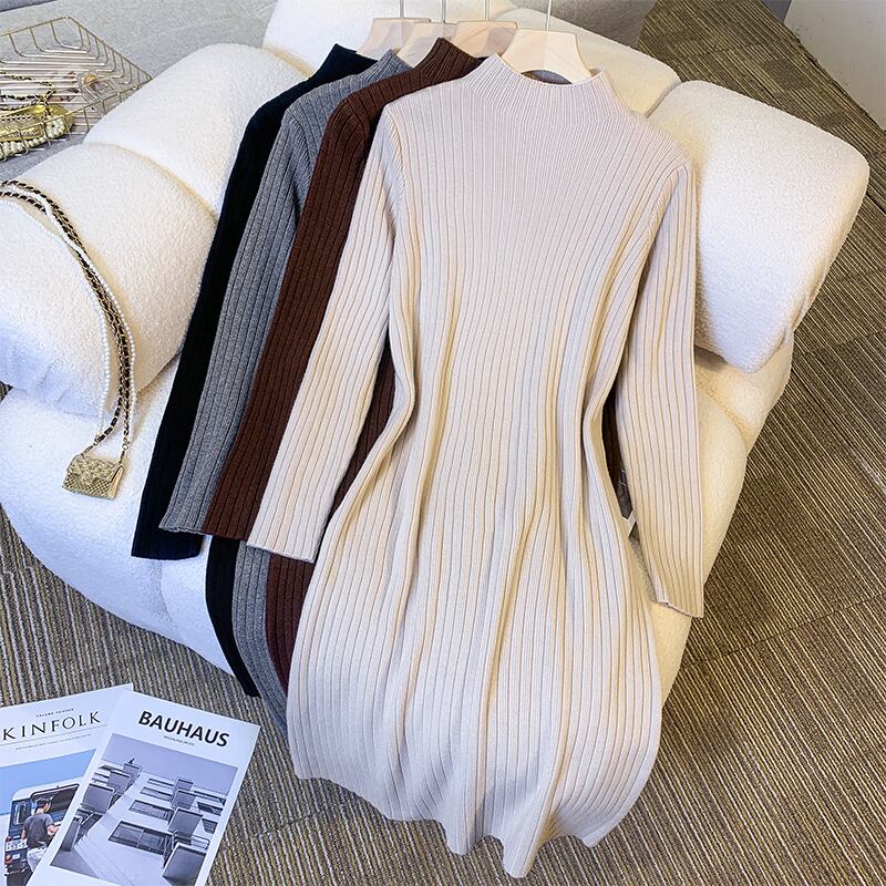 プラスサイズの婦人服2023ファットシスター春の新作長袖ミドル丈ボトムススカートハーフハイカラーニットドレス ロング 大きめサイズ スプリング 春物 8884120336658830