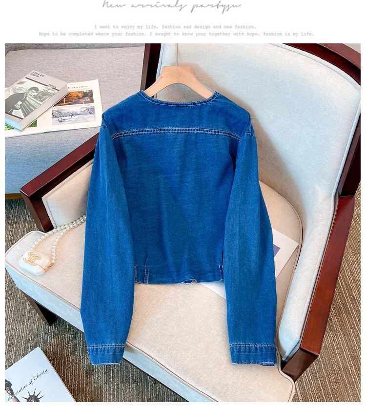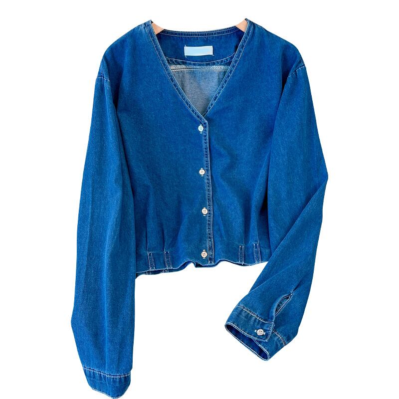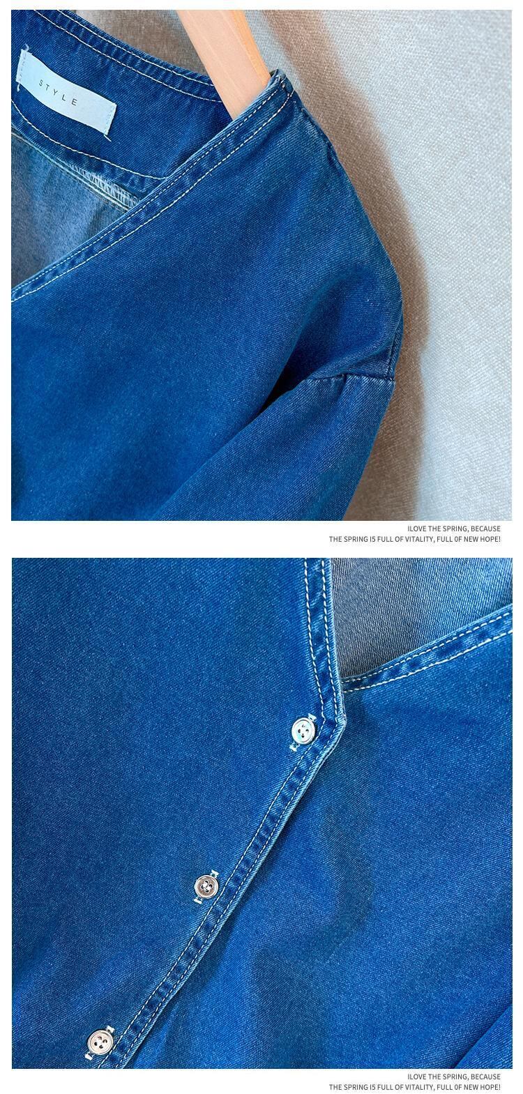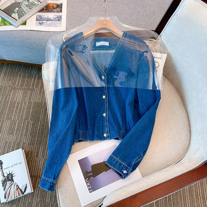 大きいサイズの婦人服 2023 春服ファットシスターズ新しいファッションレトロデニム V ネックオールマッチ痩身トップス 大きめサイズ スプリング 春物 Vネック 888411201460687
