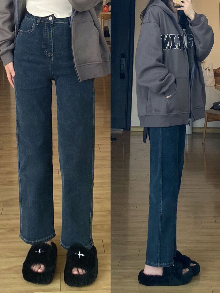 大きいサイズの婦人服 2023 春の新しいスタイルの太った姉妹は、ヒップをカバーして細く見えます。ハイウエストで細く見えます。ストレートのゆったりした伸縮性のあるジーンズ ハイウェスト エラスティック 大きめサイズ スプリング 春物 888418244861165