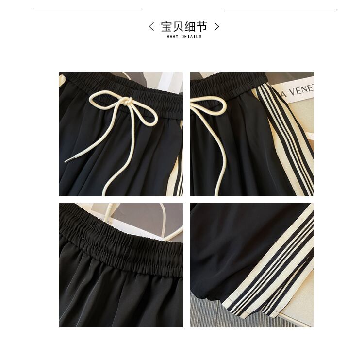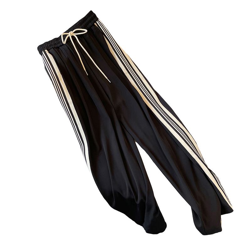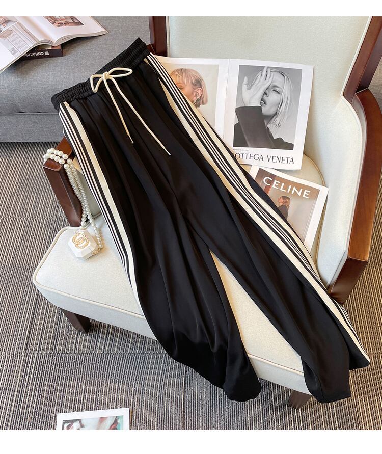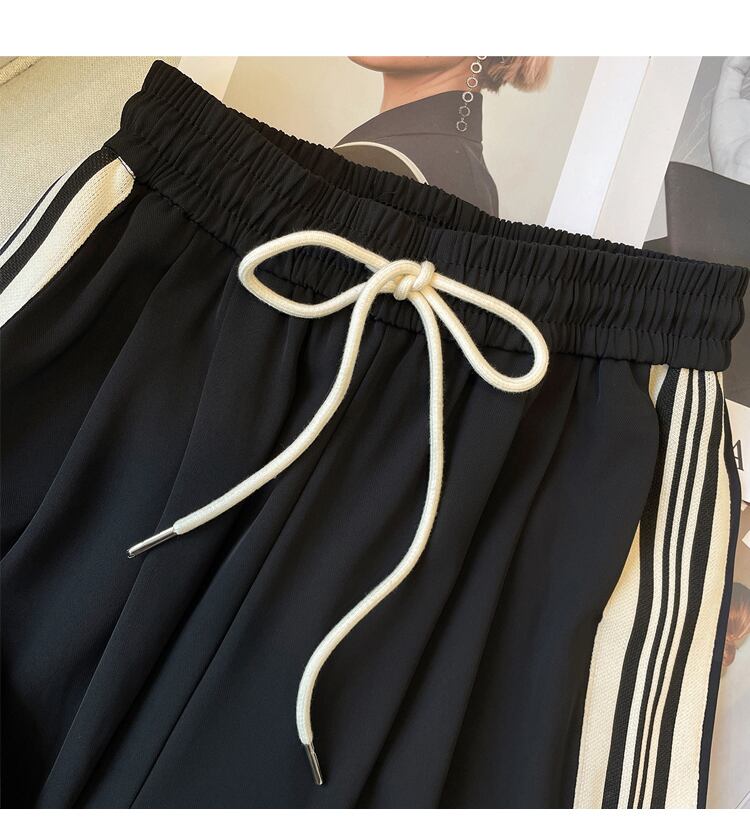 プラスサイズの婦人服 2023 春の新カジュアルファッション巾着弾性ウエストスポーツズボン太った女性のワイドレッグパンツ エラスティック 伸縮 大きめサイズ スプリング 春物 8884183618405810