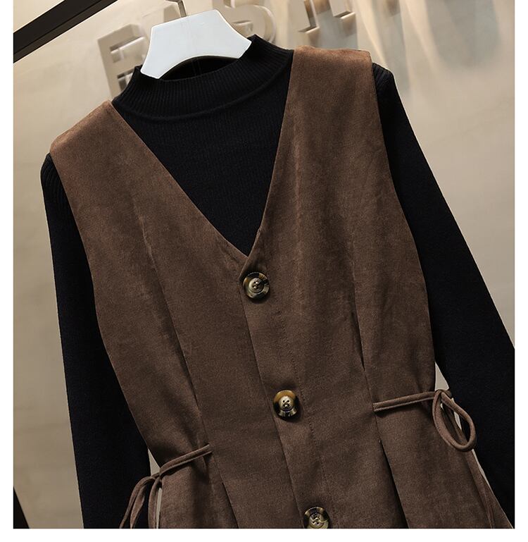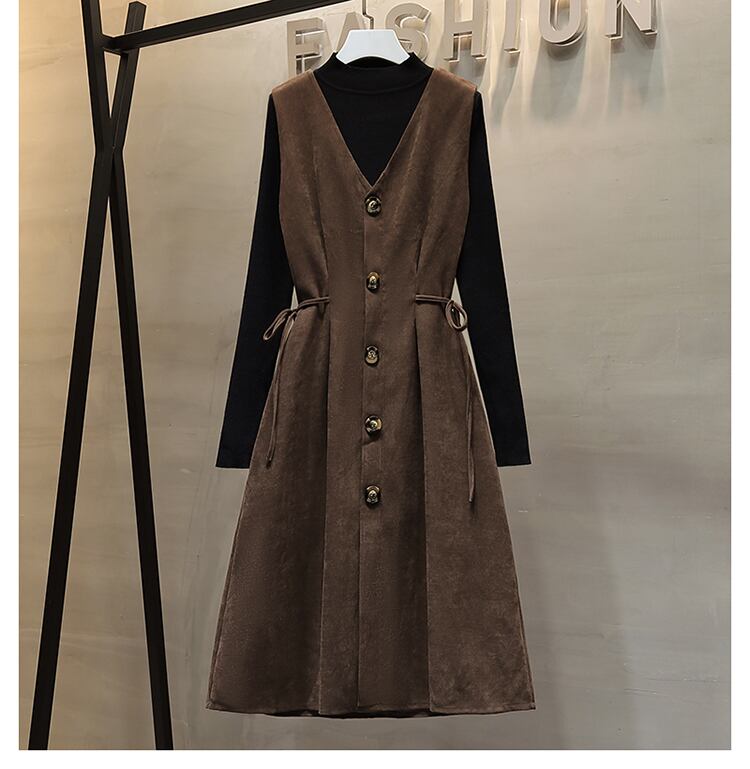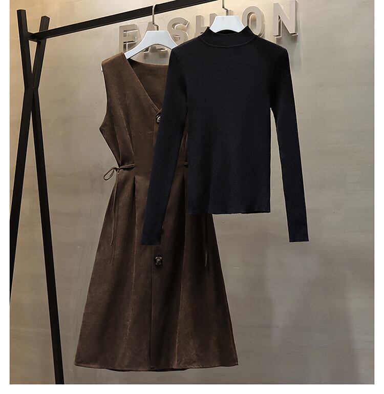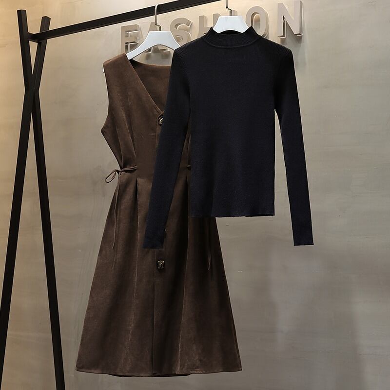 プラスサイズの婦人服 2023 トレンディな女性の春の新しい脂肪姉妹ニット底入れセーターウエスト痩身ドレス 2 点セット 大きめサイズ スプリング 春物 8884174191934740