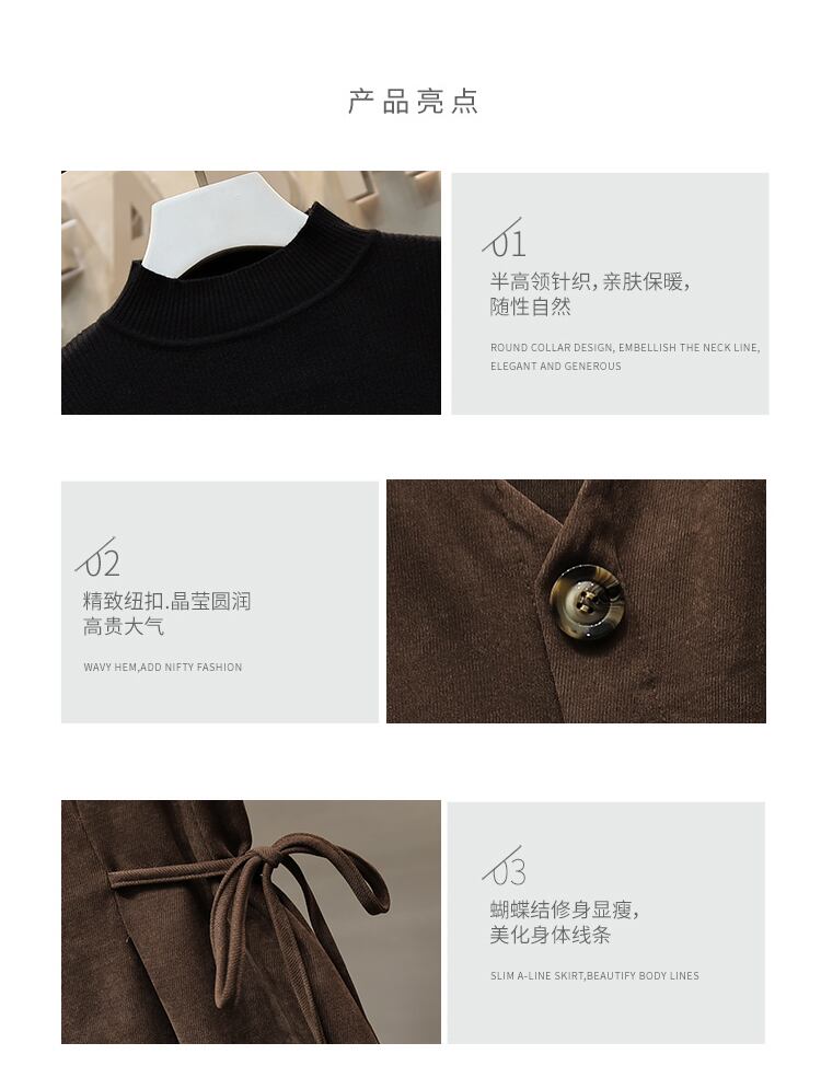 色:シングルキャメルスカート,単一の黒いセーター,キャメルスカート+黒セーター