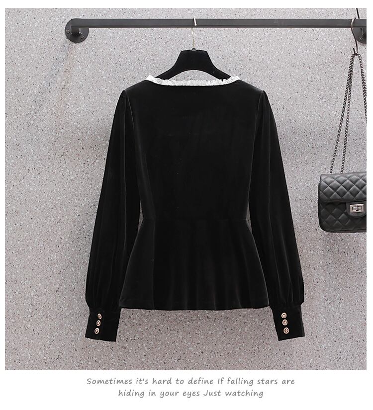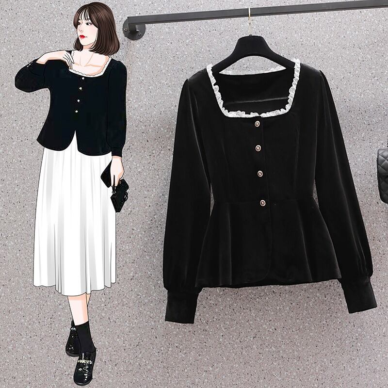 大きいサイズの婦人服 2023 トレンディな女性の春の新しい太った姉妹に見える薄いファッション ゴールド ベルベット オールマッチ eign スタイルの年齢を減らすシャツの潮流 大きめサイズ スプリング 春物 8884139353849601