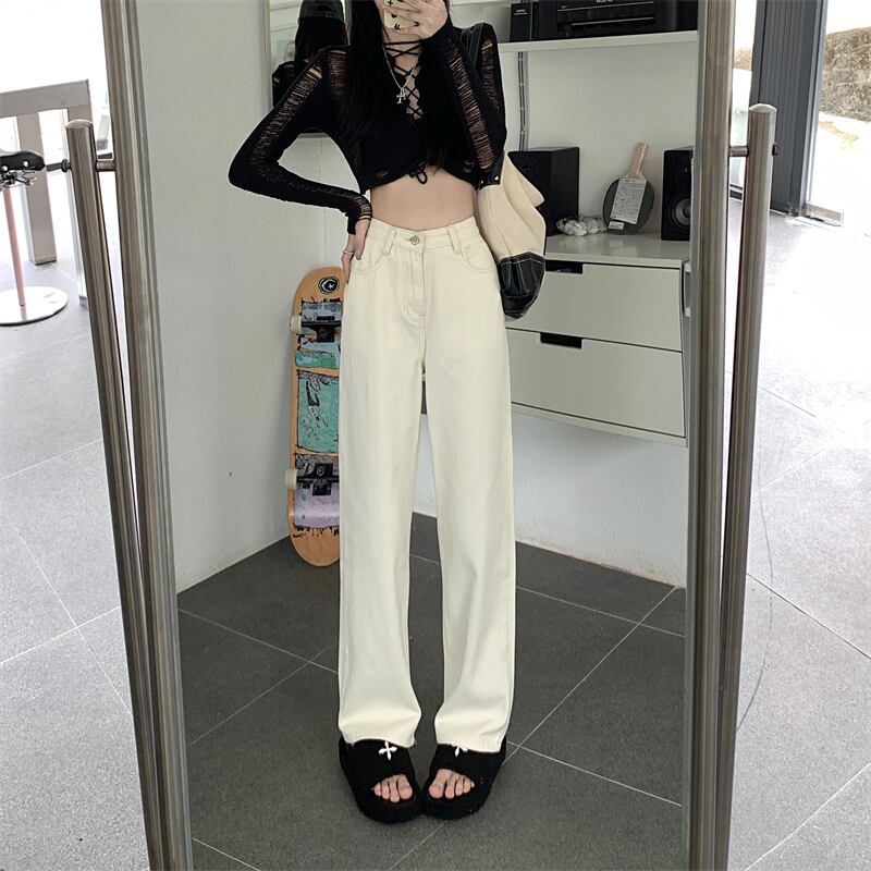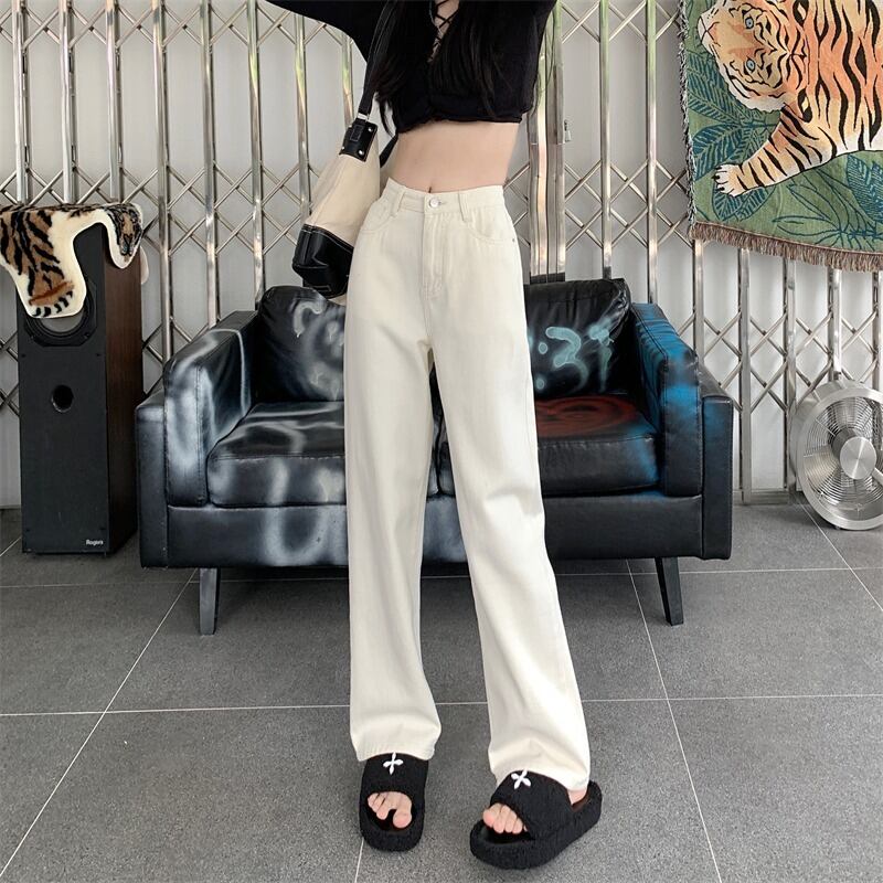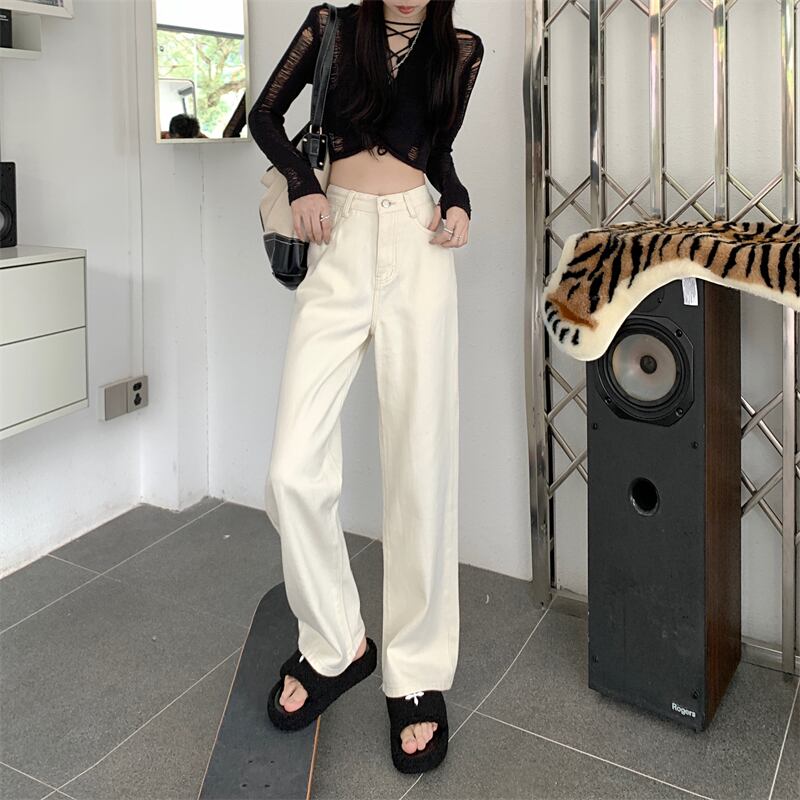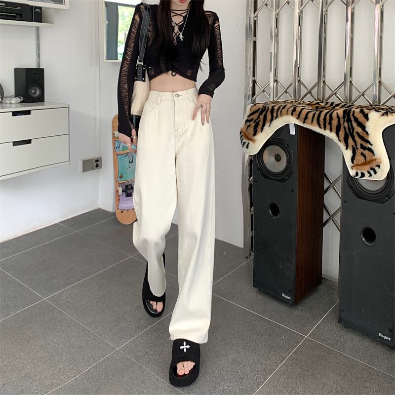 プラスサイズの婦人服 2023 トレンディな女性の春の新しいファットシスターハイウエストドレープストレートチューブルーズワイドレッグ eign スタイルジーンズ女性 ハイウェスト 大きめサイズ スプリング 春物 8884188960047090