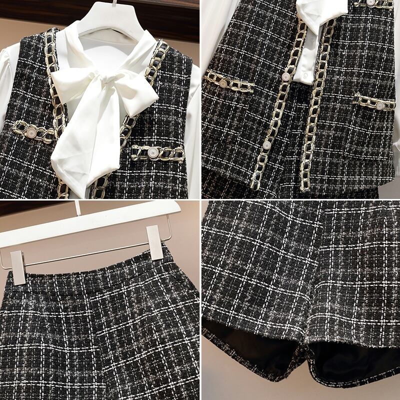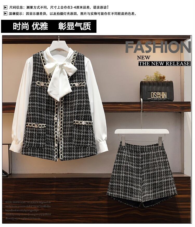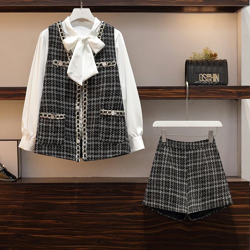 プラスサイズの婦人服 2023 ファットシスター春の新しい eign スタイルスタイルの薄い長袖シャツベストショーツ 3 点セット ロング 大きめサイズ スプリング 春物 ブルマー 8884174521944257