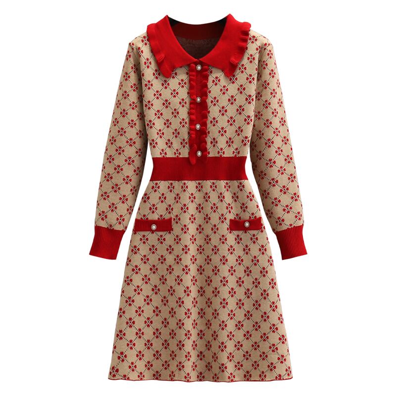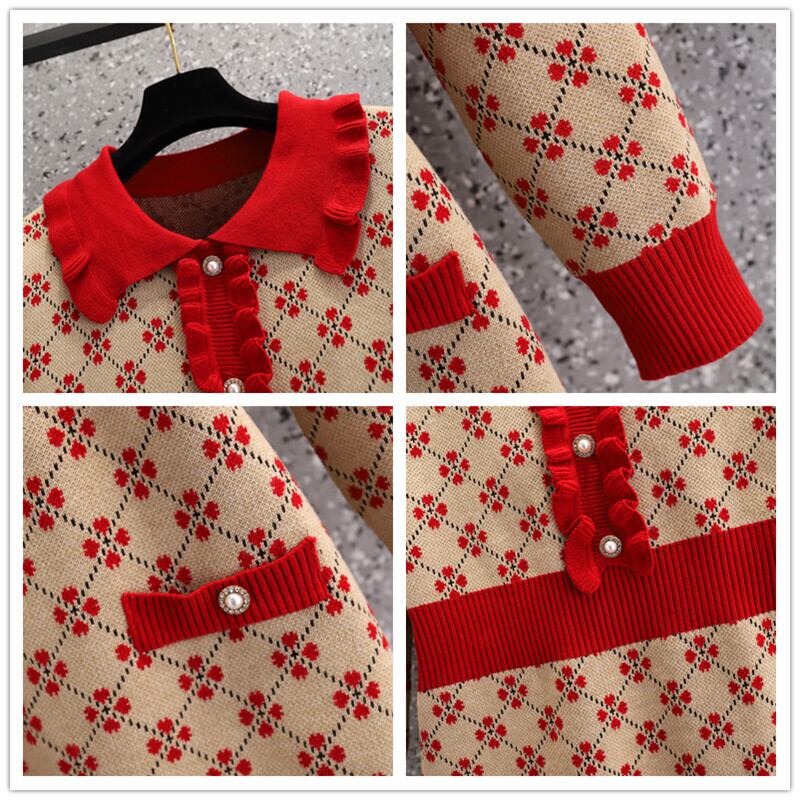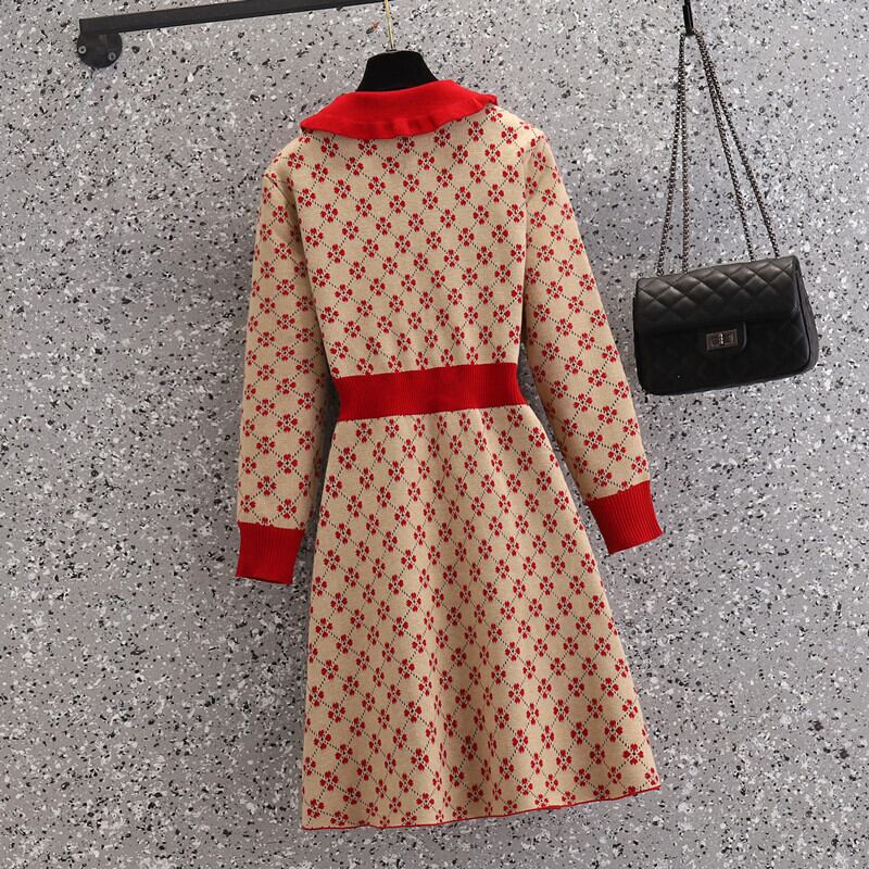 プラスサイズの婦人服 2023 脂肪姉妹春の新しい人形の襟薄いセータースカート中丈のニットドレスの女性 大きめサイズ スプリング 春物 8884124913996836