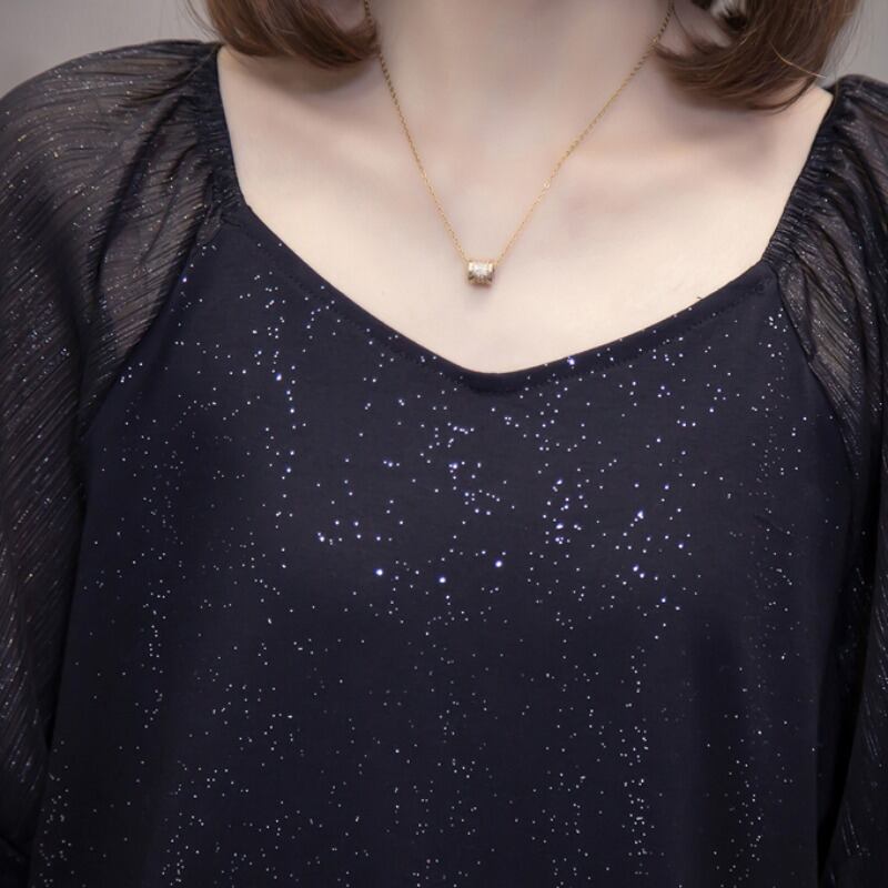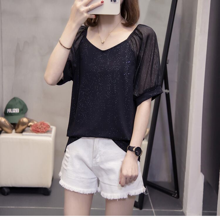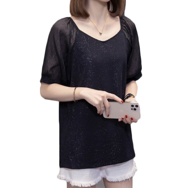 プラスサイズの婦人服 2023 夏の新しいファットシスターシックな eign スタイルオールマッチ緩いシフォンステッチ半袖 Tシャツの女性 大きめサイズ サマー 夏物 8884159557422421
