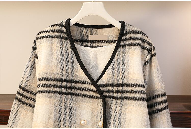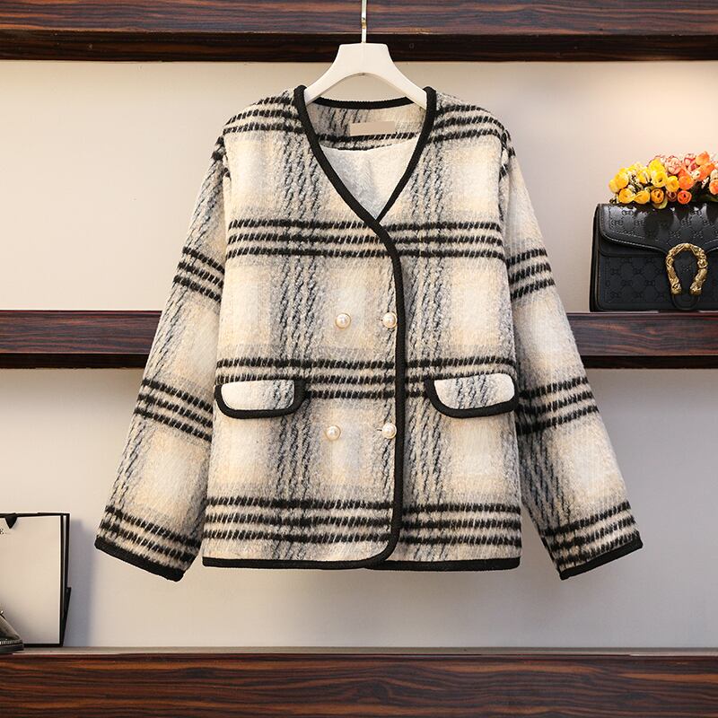 プラスのサイズの婦人服 2023 ファット シスター春の新しいプラス ベルベットの厚いバージョン緩い品質オール マッチ チェック柄ウール コート 大きめサイズ スプリング 春物 8884158523451932