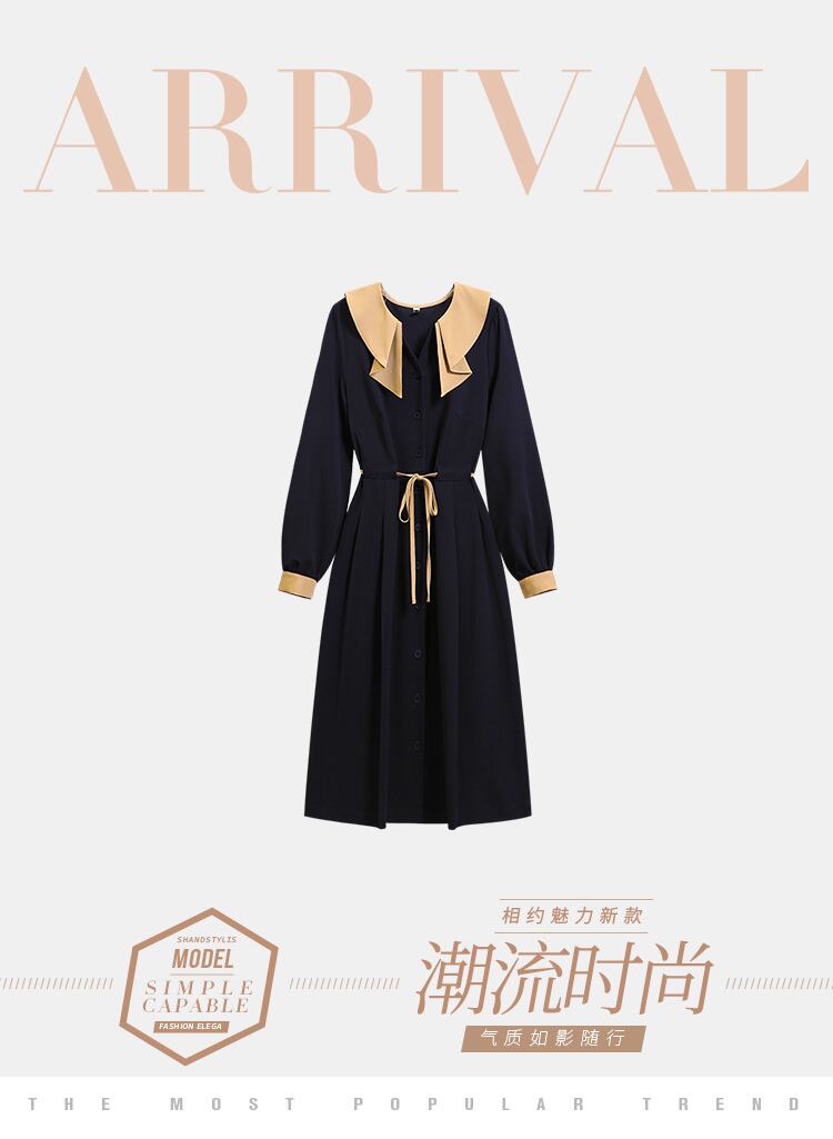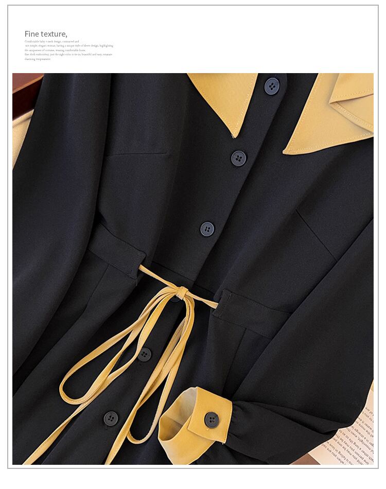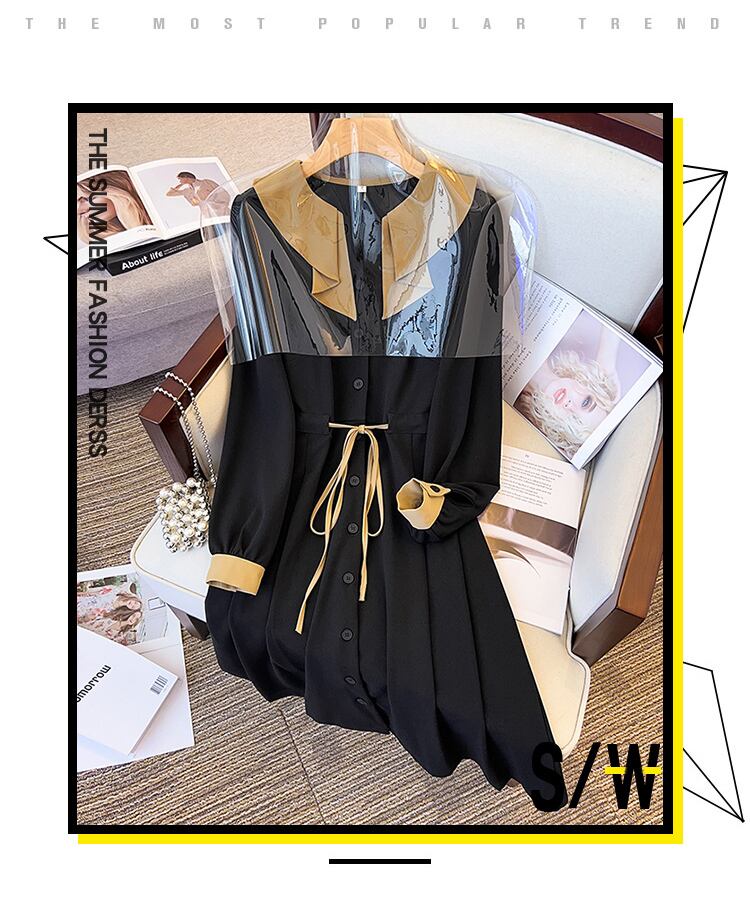 プラスサイズの婦人服 2023 ファットシスター春の新しい eign スタイル薄型デザインセンスストラップウエスト長袖ドレス女性 ロング 大きめサイズ スプリング 春物 8884115302100567