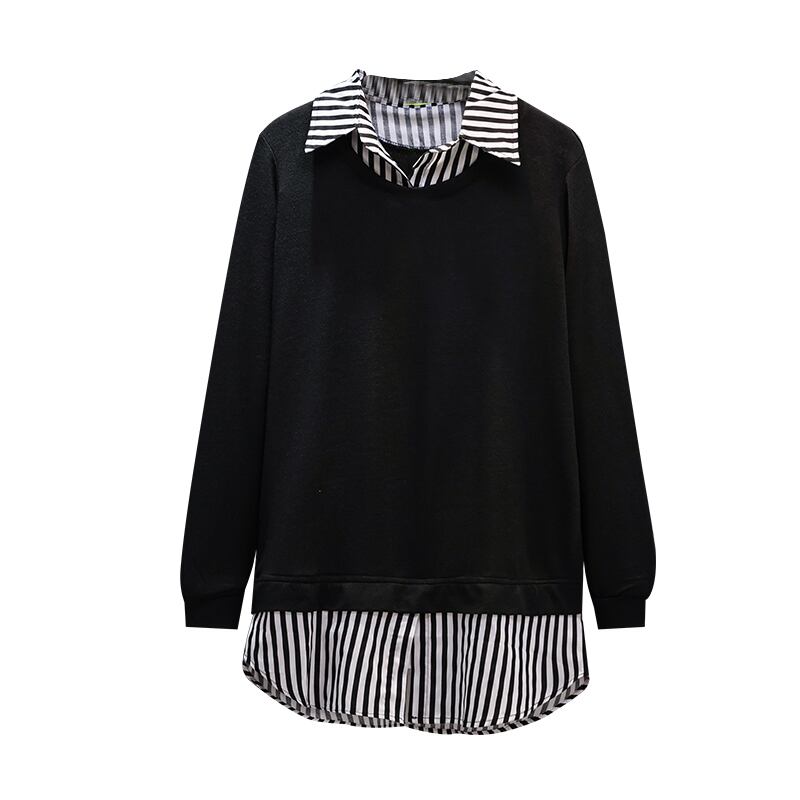 大きいサイズの婦人服 2023 トレンディな女性の春の新しいファット シスター オールマッチ ファッショナブルな eign スタイル スプライシング シャツの襟 フェイク ツーピース セーター 大きめサイズ スプリング 春物 8884173841086295