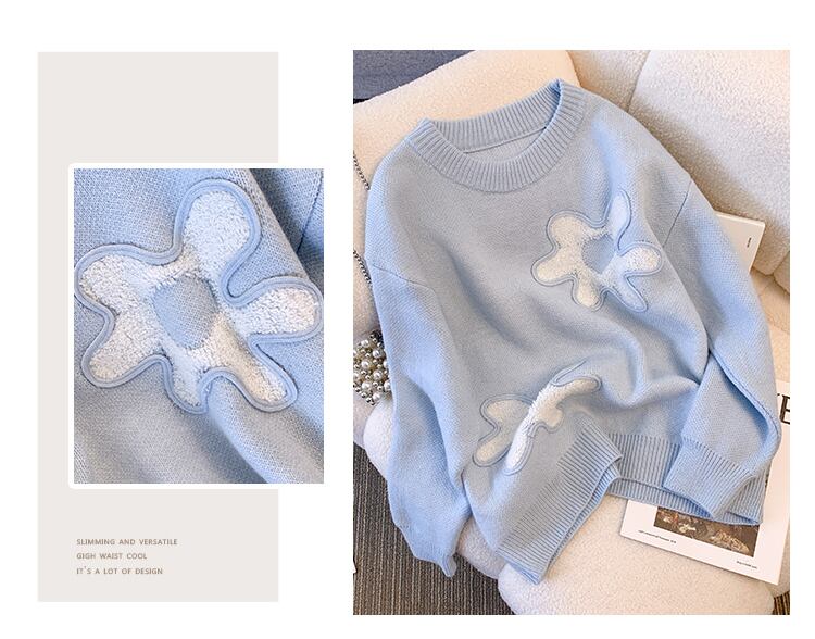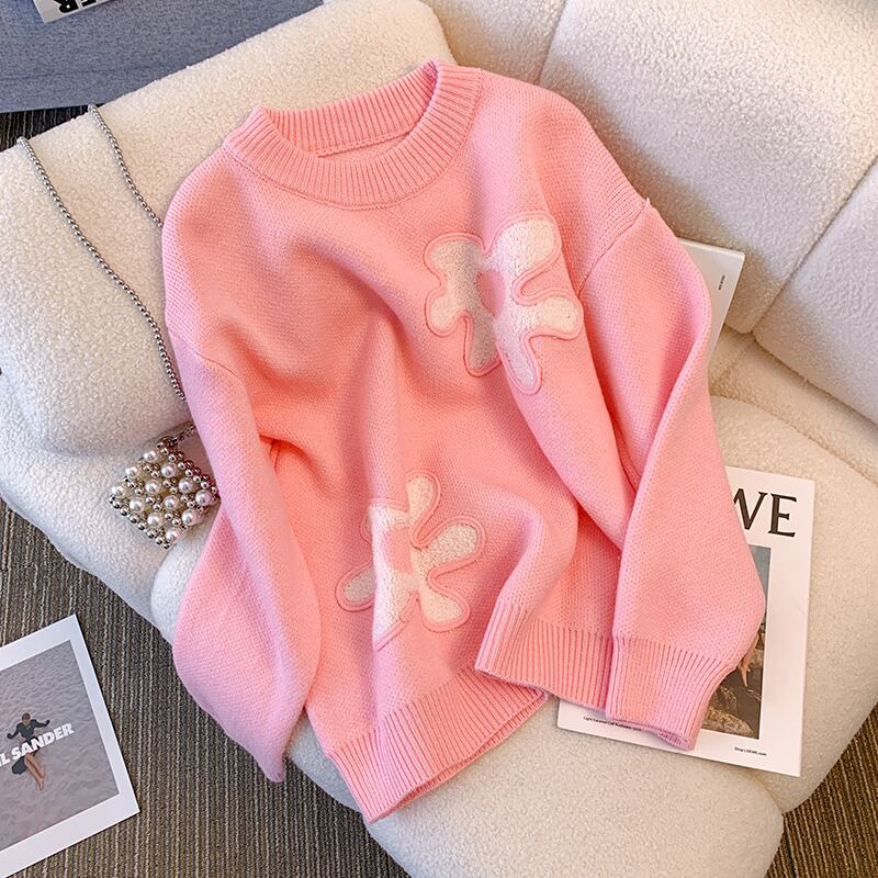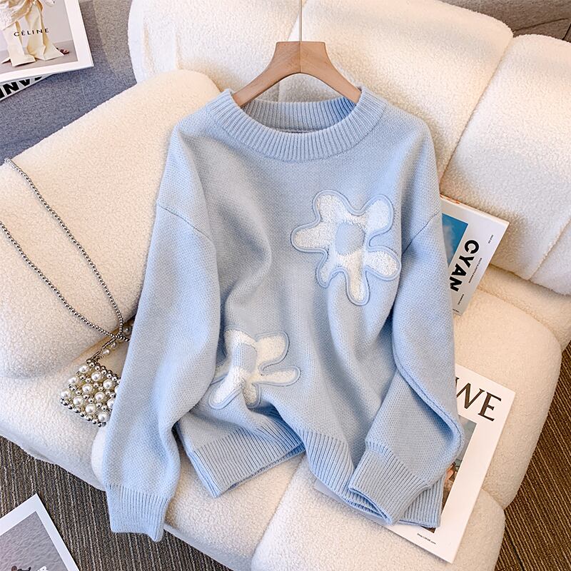プラスサイズの婦人服 2023 脂肪姉妹春の新ファッションセータードロップショルダースウィートフラワープルオーバートップ女性 大きめサイズ 大人ガーリー キュート カジュアル スプリング 春物 フラワーデザイン 8884131718517381